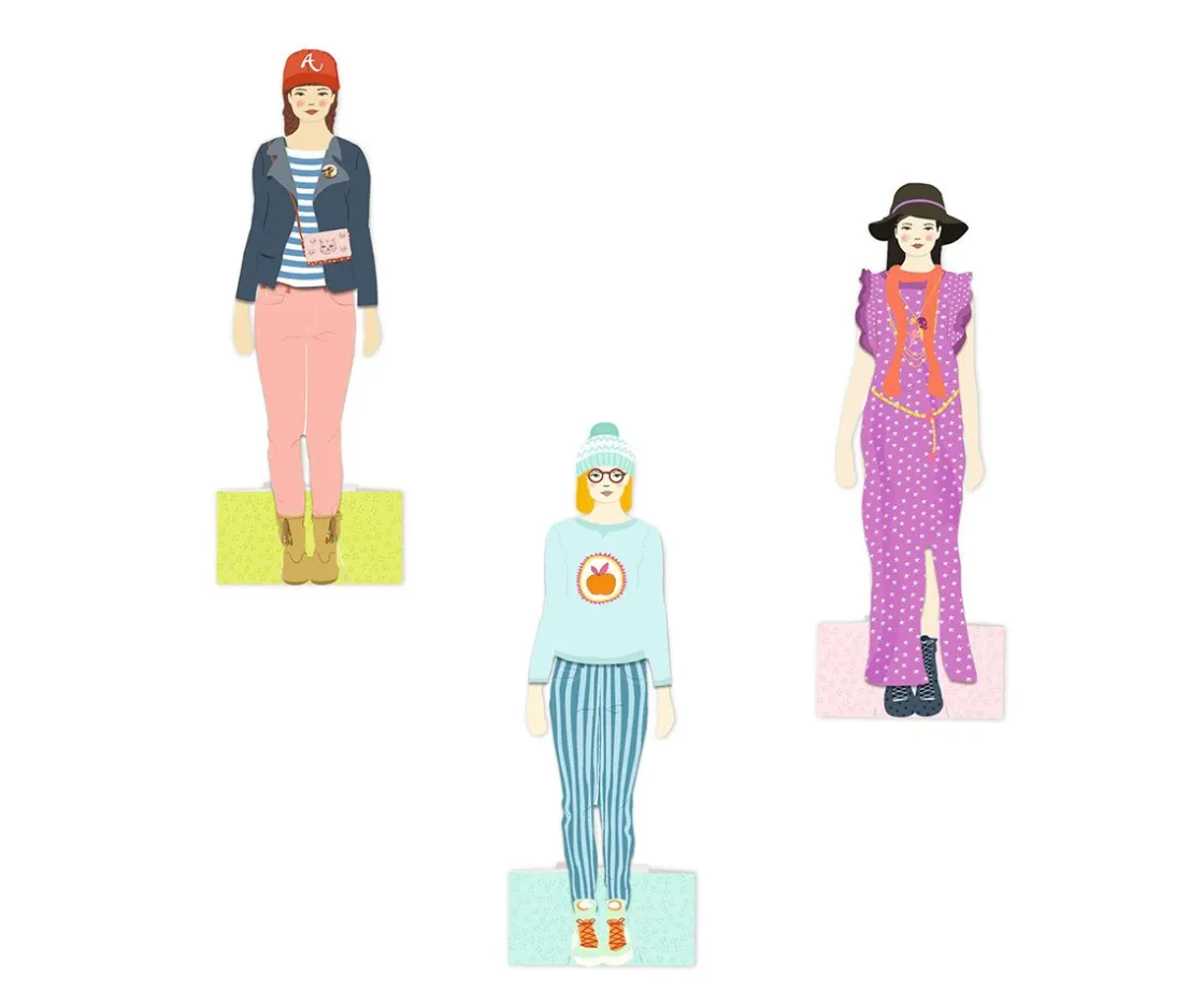 - Incluye: 3 muñecas maniquíes de 23 cm de altura de cartulina gruesa, 110 accesorios precortados, 1 caja de compartimentos para guardarlas