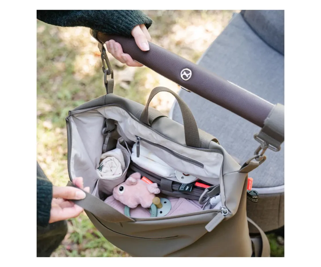 Práctica mochila, bolso y cambiador para llevar contigo a cualquier parte. Puedes llevarla en el carro gracias a los agarres que incluyen ó si lo prefieres llevarlo cómodamente cómo mochila para transportarla de un lado a otro con todo lo que necesitas para tu bebé.