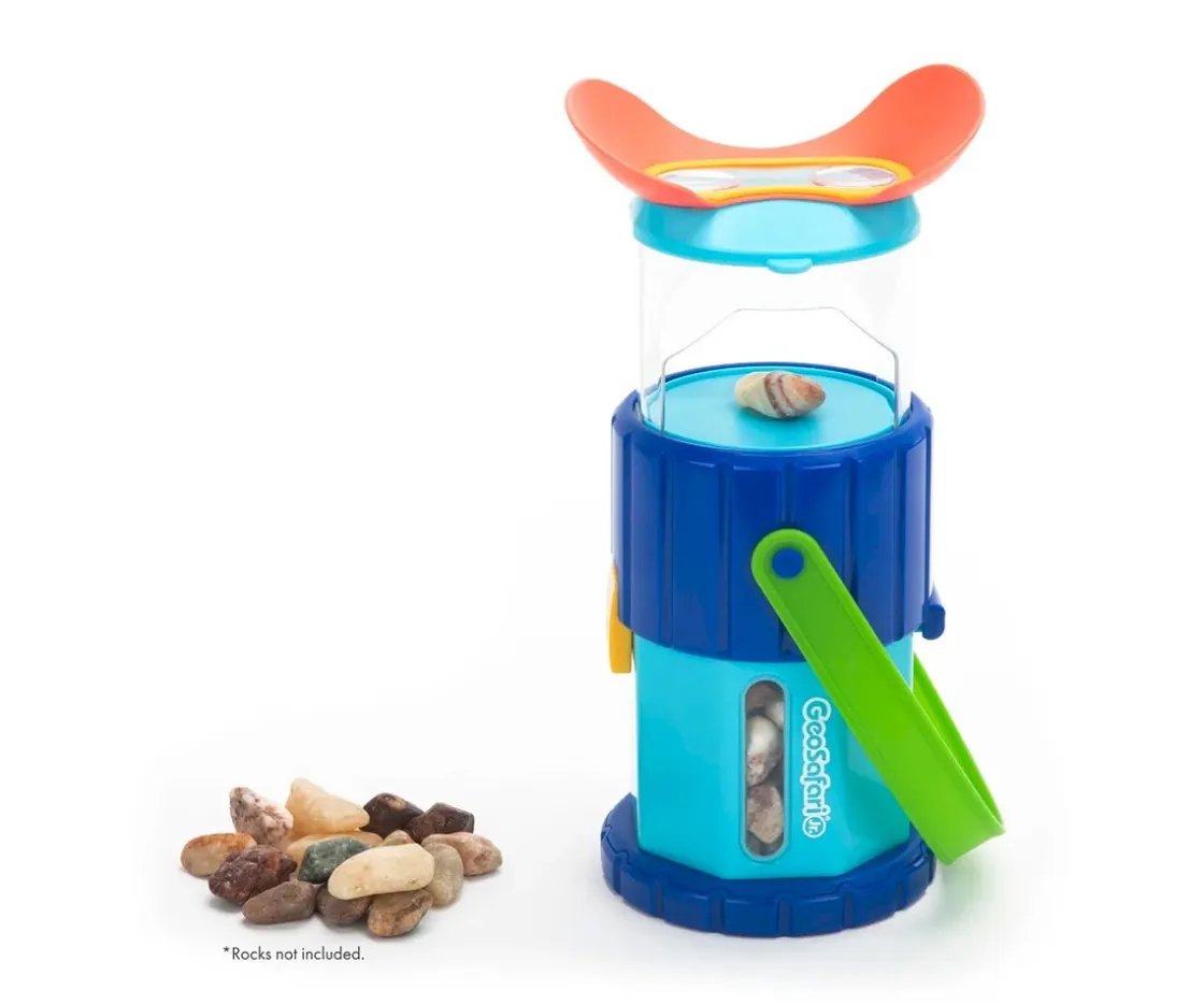 Recoge y observa las piedras de la naturaleza con el Geosafari Jr. Rocknoculares de Educational Insights. Llévalo en tus aventuras, recoge y guarda piedras en el compartimento de almacenamiento, luego extiende el ocular y observa las piedras bien de cerca bajo la lupa.