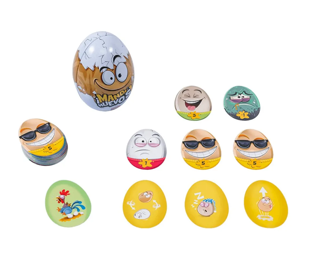 Un original huevo que incluye cartas para intercambiar con el fin de que te hagas con los huevos de mayor puntuación. Deberás ser rápido y emplear toda tu atención y concentración.