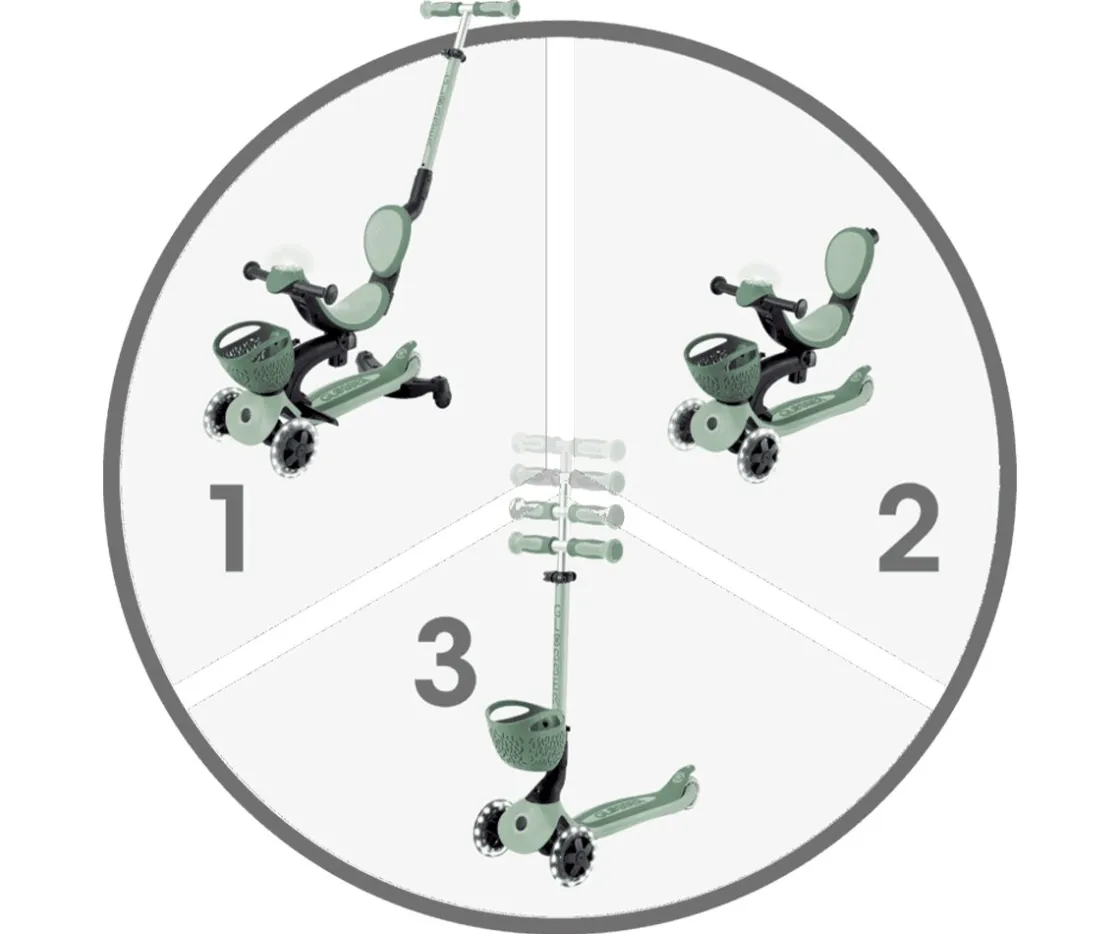 - Modo Patinete: Convierte el Go Up Baby Light 360° en un patinete de 3 ruedas. A medida que los niños crecen y se sienten más seguros, pueden utilizarlo como un patinete tradicional ¡La transición perfecta de paseador a patinete!