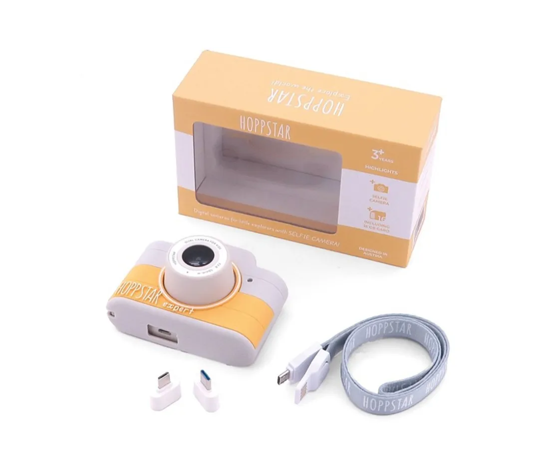 La cámara infantil Expert de Hoppstar permitirá que tus peques realicen selfies gracias a la cámara selfie adicional en la parte trasera. Además cuenta con una tarjeta SD 16 GB de espacio de almacenamiento para hasta 8000 fotos y tiene función de cámara de video.