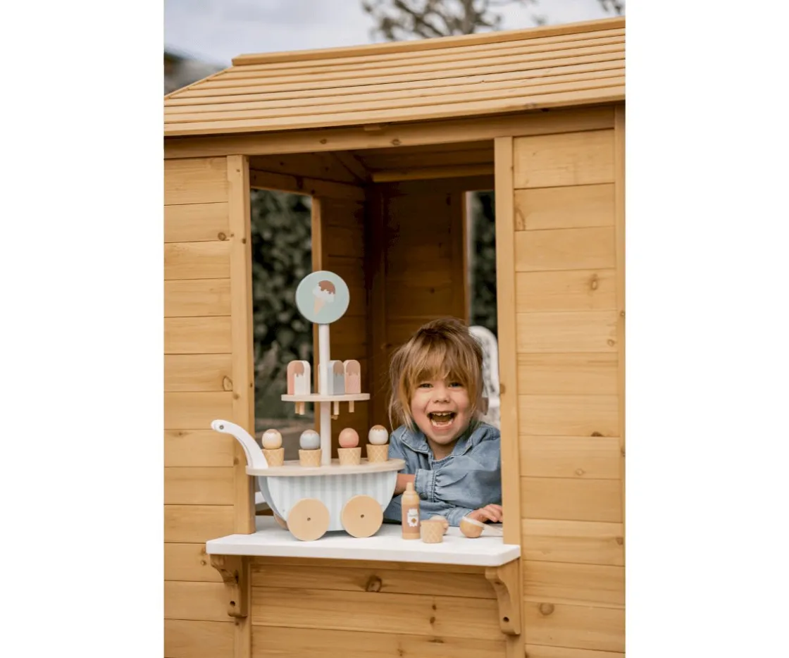 - Incluye: carrito de helados, 5 cucuruchos con sus bolas de helado, 5 helados de polo 1 botella de sirope de chocolate