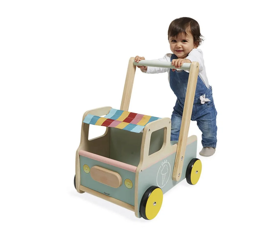 Los peques se convertirán en auténticos heladeros con este original andador de Janod. Con sus 4 helados incluidos que podrán guardar en el espacio de almacenamiento de la parte posterior del carrito. También hay un segundo espacio de almacenamiento en la parte delantera del mismo, ideal para llevar a su muñeco preferido.