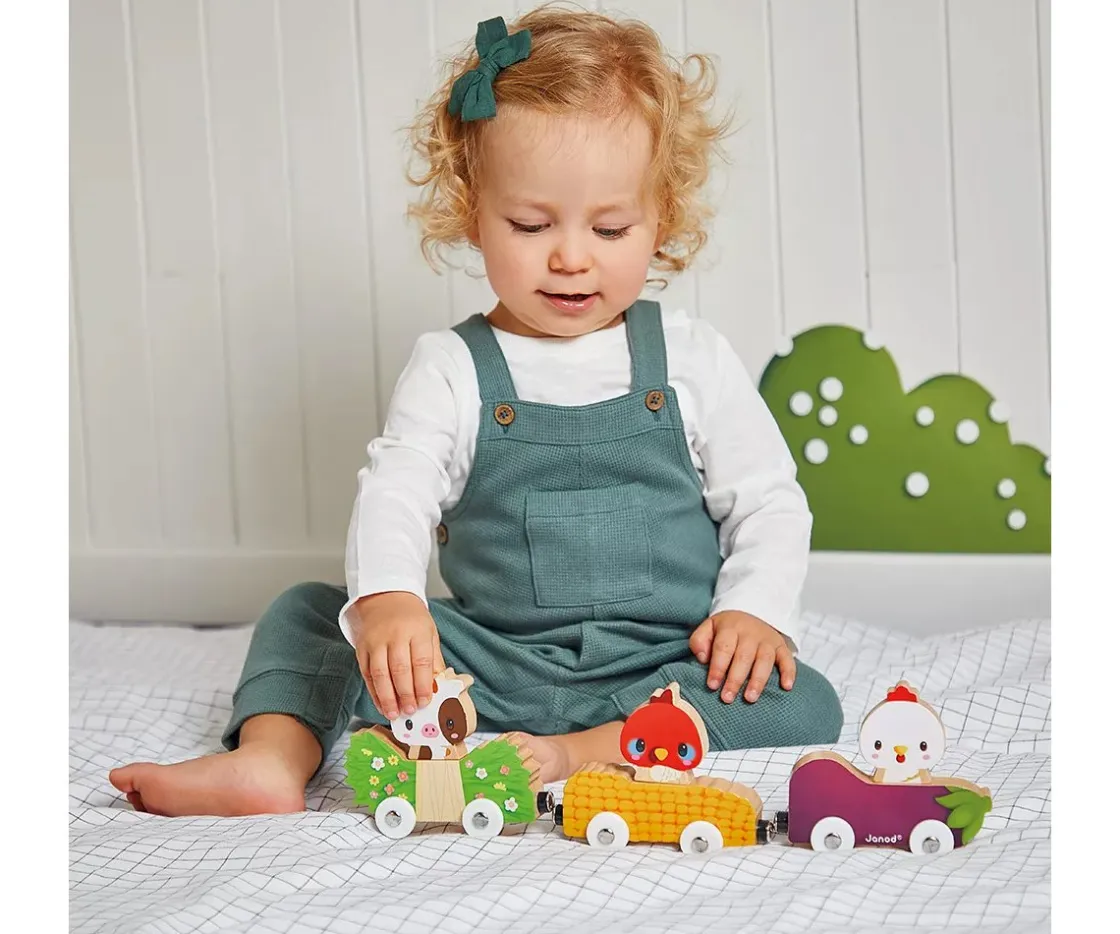 Los niños pueden relacionar cada animal con su comida favorita o colocarlos en el vehículo que prefieran, ¡son intercambiables! Además, pueden unirse como en un trenecito gracias a los imanes. ¡Una diversión magnética en la granja!