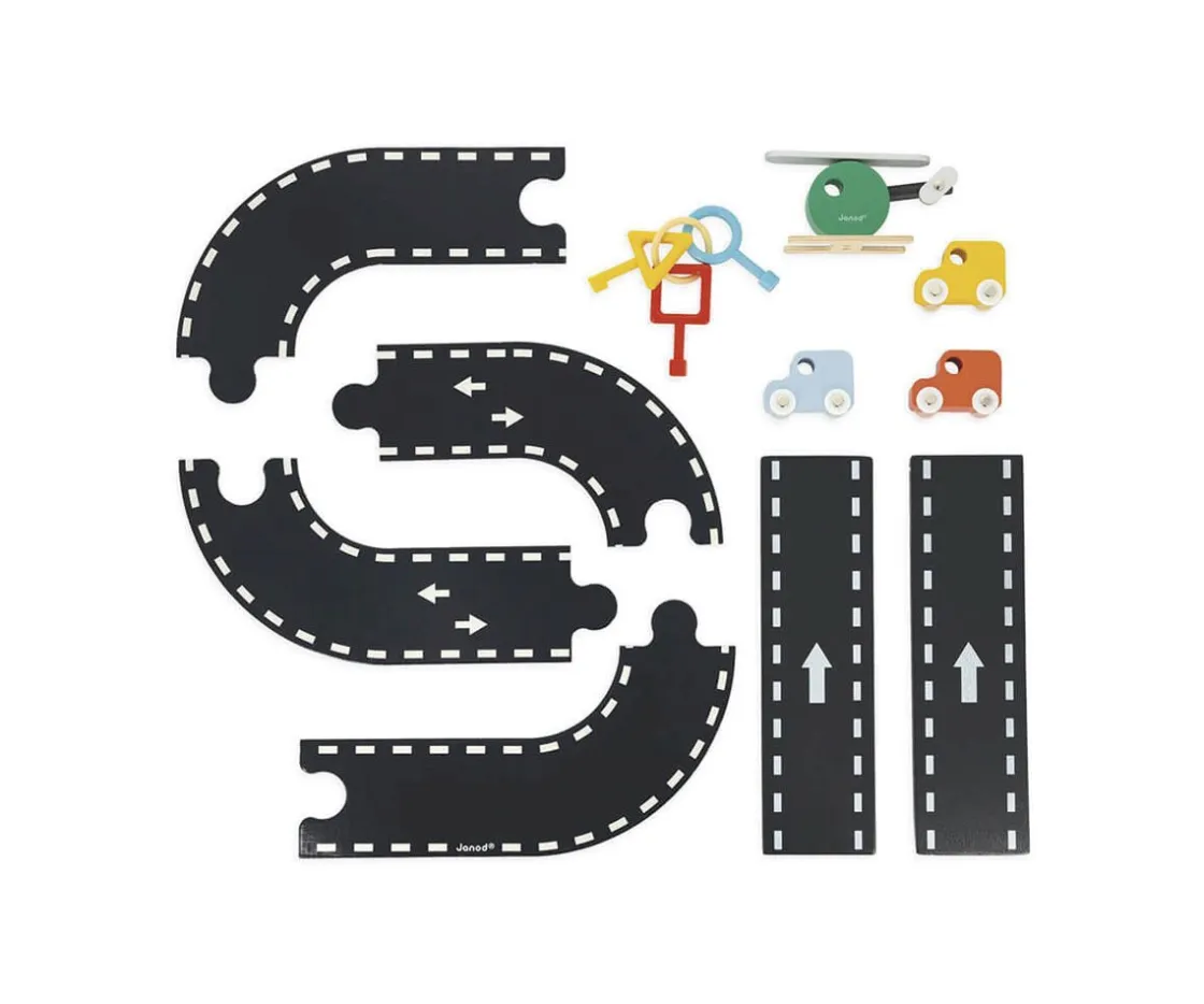 Este garaje de madera de colores brillantes y formas redondeadas es el más guay para los más peques. Se divertirán a lo grande explorando los 3 niveles de este gran juguetes con los 3 automóviles y el helicóptero de madera.