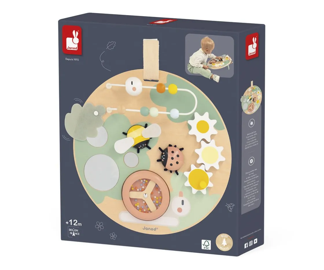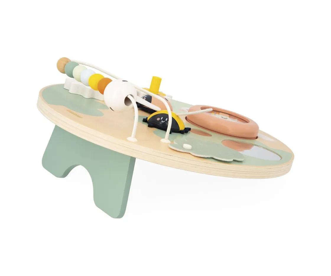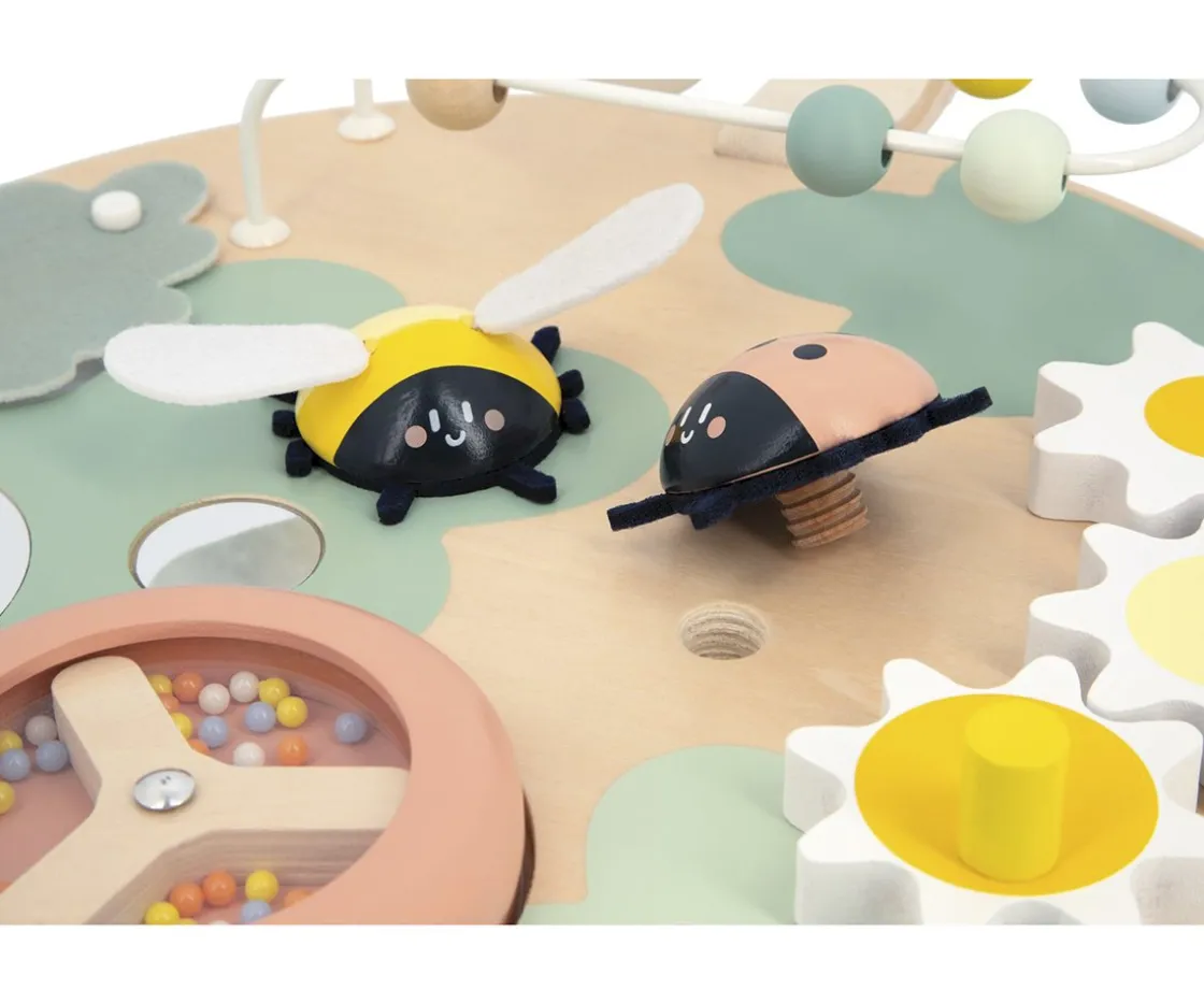 Con 7 opciones diferentes, incluyendo engranajes giratorios, un ábaco, e insectos animados como una abeja y una mariquita, este panel promete horas de diversión y aprendizaje. Además, su diseño versátil permite que se adapte a la posición de juego más cómoda para el niño, ya sea sentado o de pie.