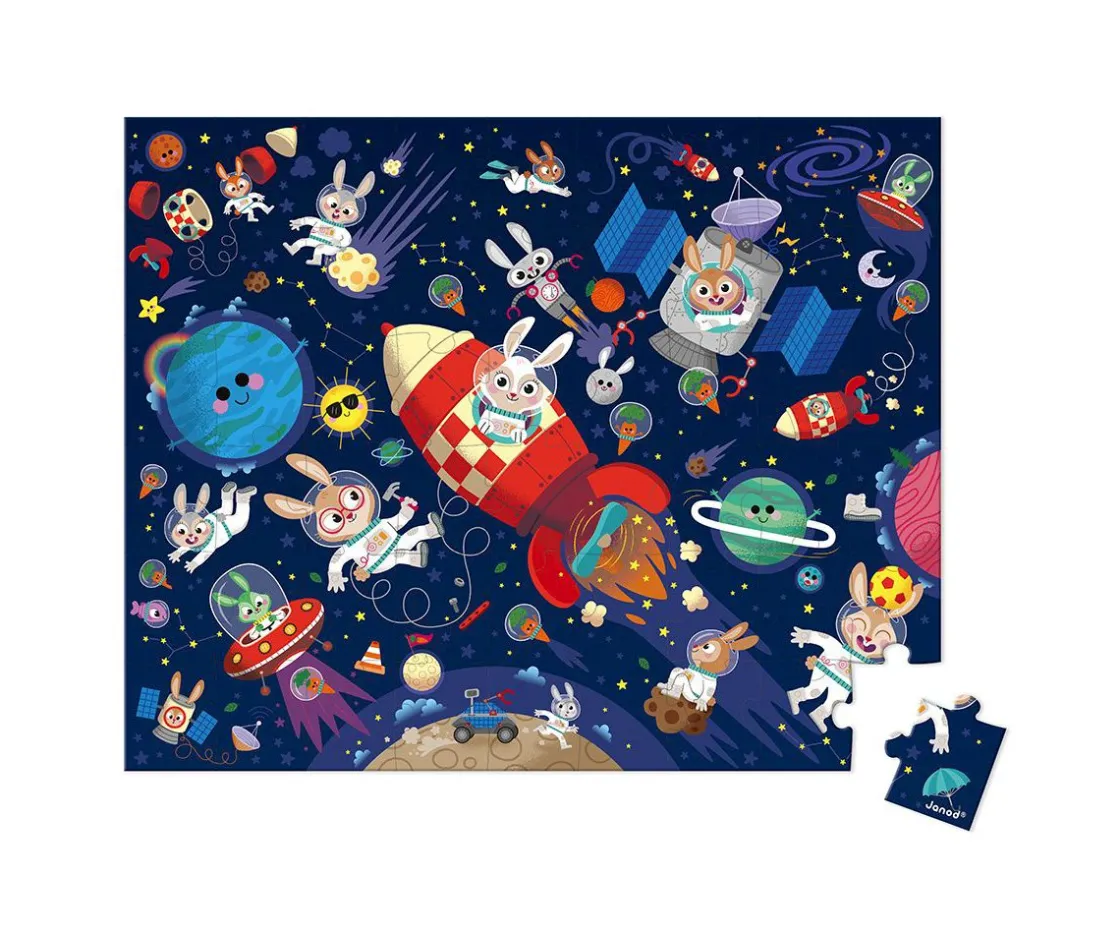Con este puzle de cartón de 54 piezas Janod, vivirás toda una experiencia de conquista espacial conejil. Viene con un póster que se puede utilizar como modelo.