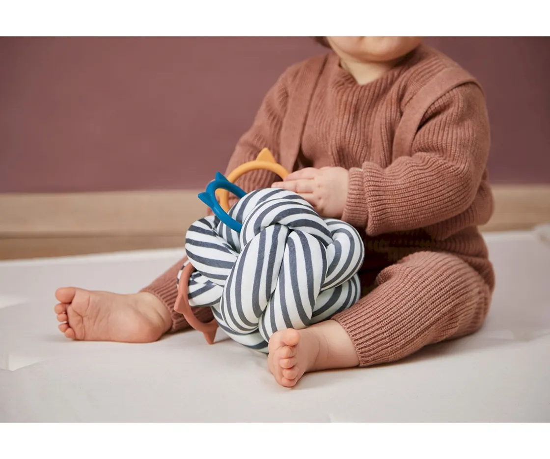 Una original bola sensorial hecha de entrelazado que facilita que los peques la sujeten, sostengan y manipulen con mucha facilidad, fomentando al mismo tiempo su motricidad fina y sus sentidos.