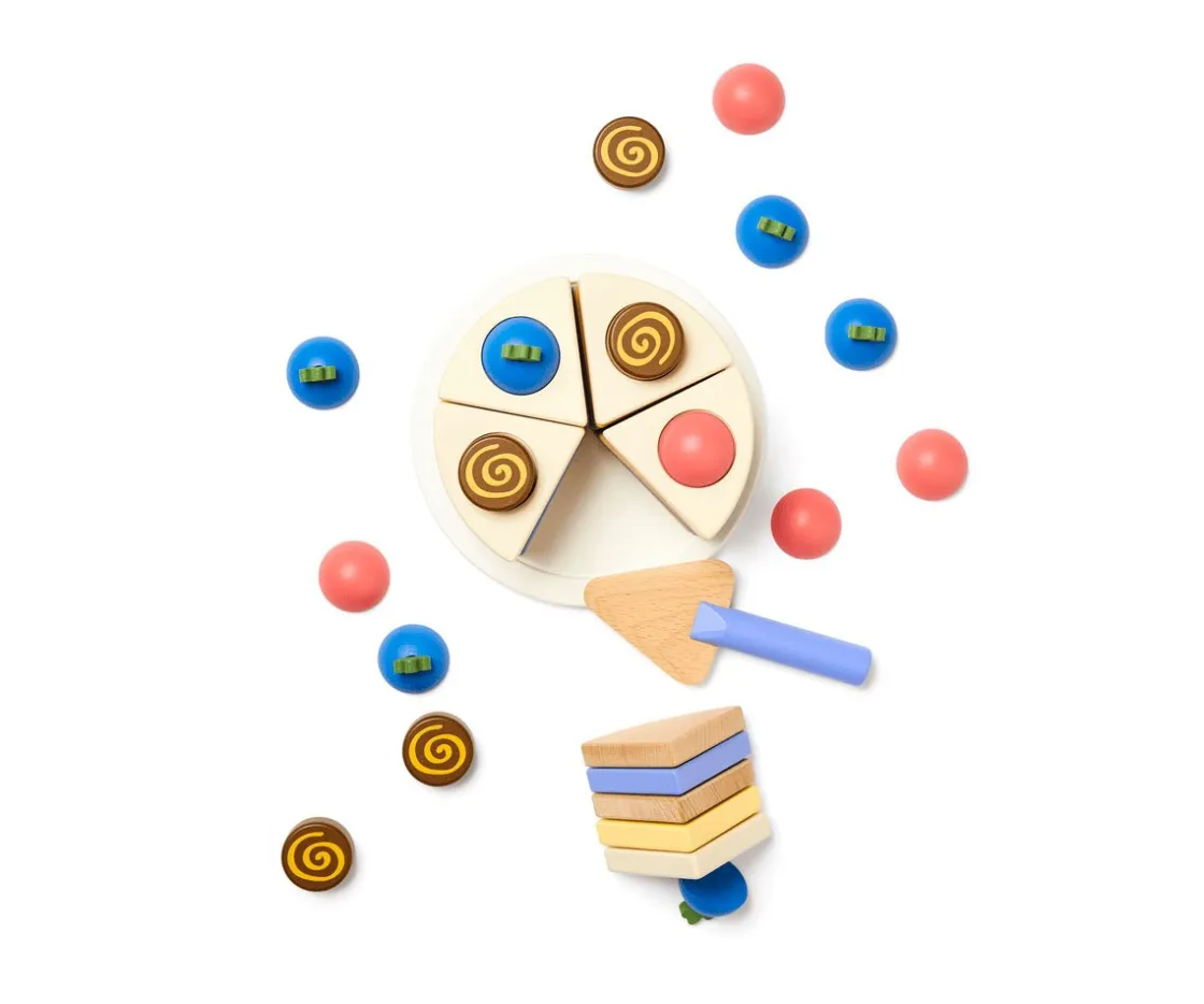 - Incluye 42 piezas: 1 plato, 1 espátula, 5 adornos gelatina, 5 adornos chocolate, 5 rodajas arándanos y 25 capas de crema y bizcocho