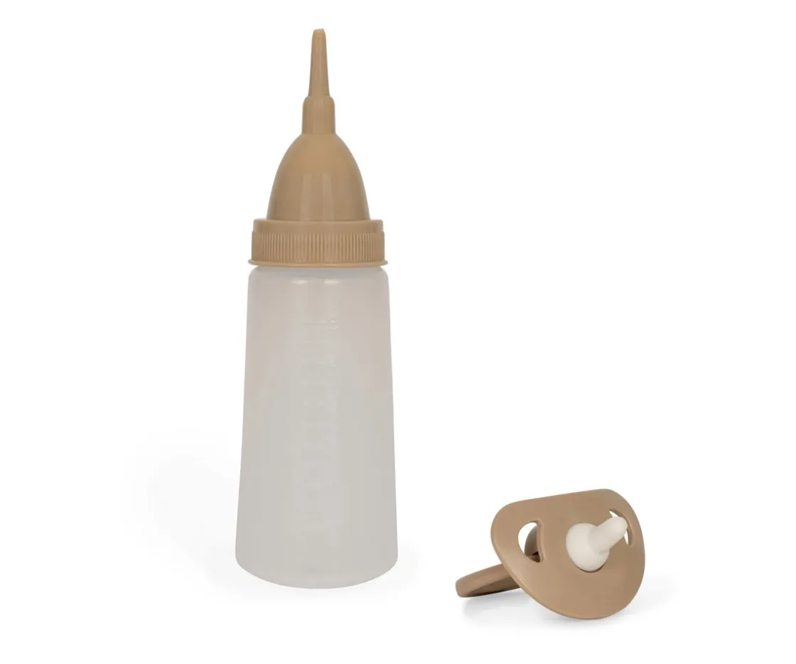 Harriet viene acompañada de su inseparable chupete y su biberón, pues es su comida preferida antes de dormir y cuando se derpierta. Lleva puesto un conjunto de algodón suave formado por una camiseta y un pantaloncito, que se puede quitar y poner fácilmente.