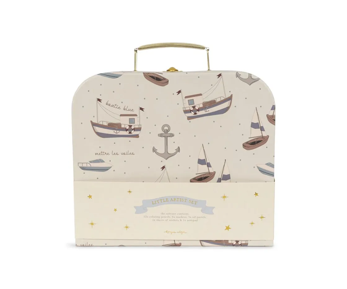 Divertida maleta con pinturas en su interior de Konges Slojd, ideal para que los peques exploren su creatividad en cualquier lugar. Perfecta para regalar, incluye todo lo necesario para dibujar y pintar, ya sea en casa o durante un viaje.