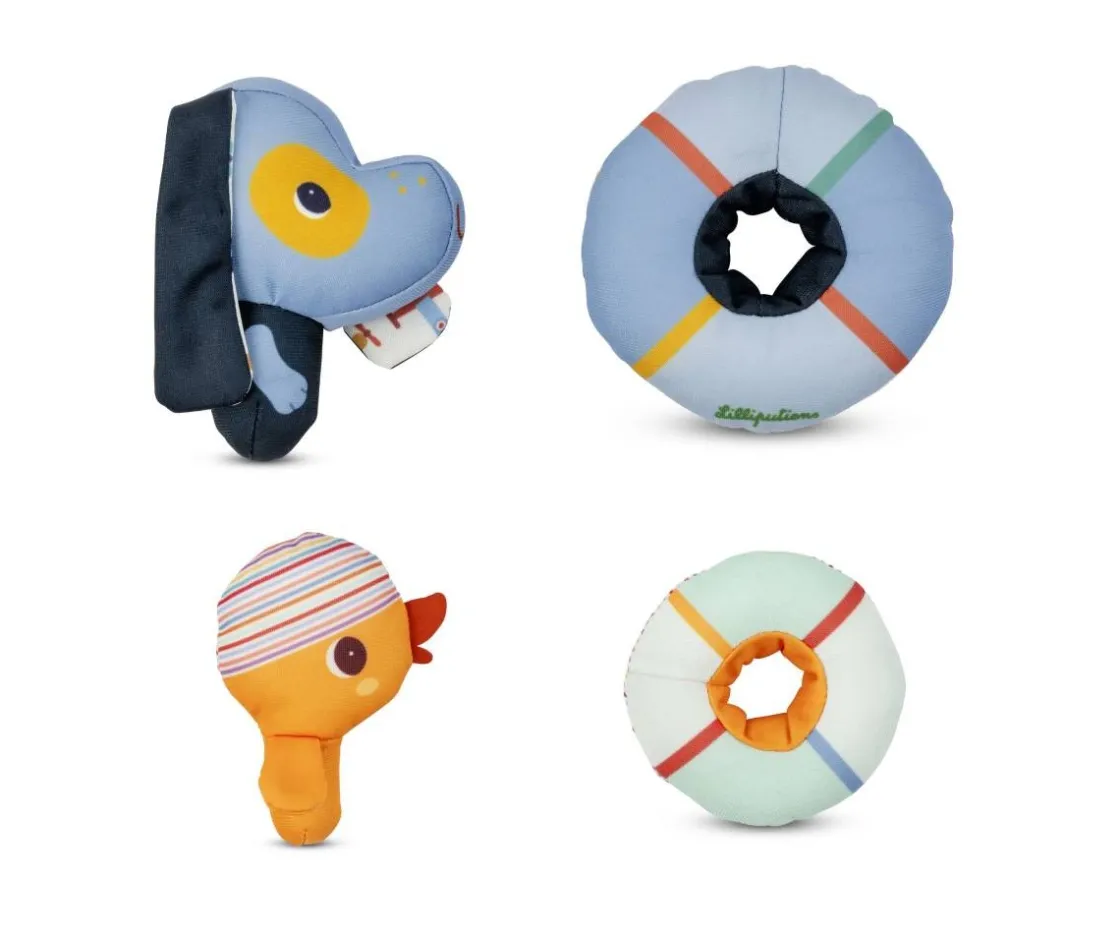 A Jules el perro y a Gaspard el pato de Lilliputiens, ¡les encanta bañarse! Cómodamente instalados en sus flotadores, flotan alegremente sobre el agua y acompañan al niño en todas sus aventuras durante el baño.