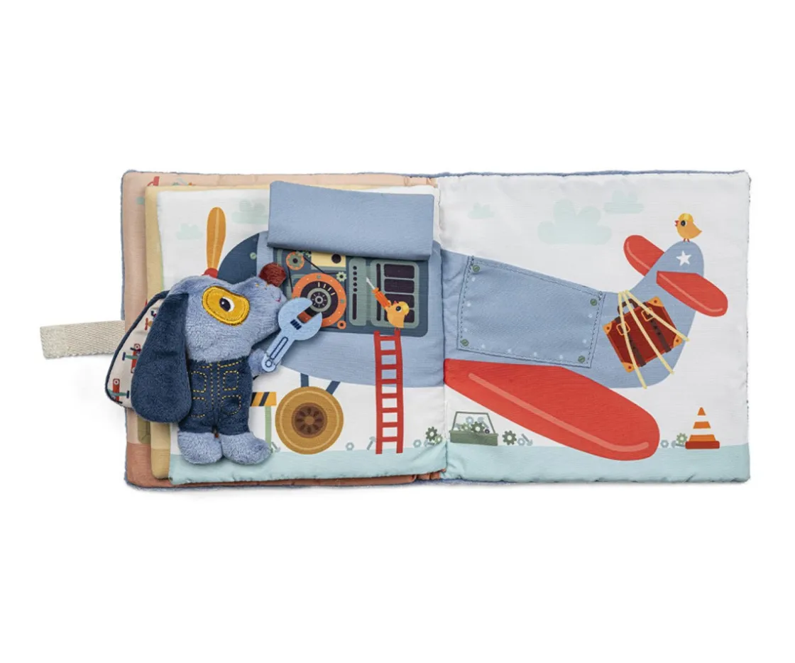A lo largo de las páginas blanditas de este libro, los peques acompañan a Jules, el perro manitas, en su día a día reparando vehículos en su garaje. Un cuento interactivo lleno de puertas que se abren, persianas que se levantan y sorpresas que se esconden, ideal para despertar la curiosidad, la imaginación y la motricidad de los más pequeños.
