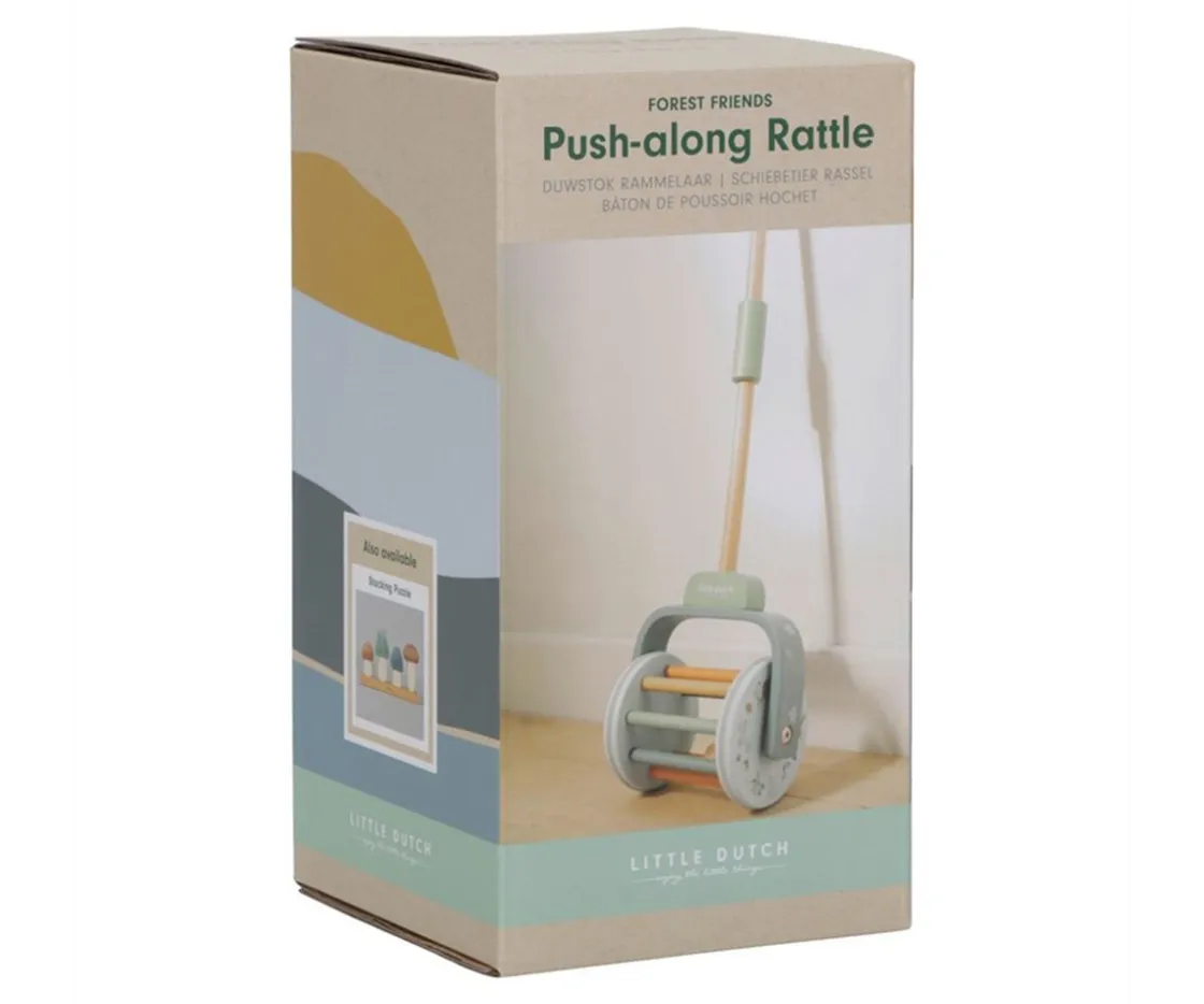 Los peques que comienzan a dar sus primeros pasos estarán encantados de arrastrar por todos los rincones de casa el original juguete de arrastre y sonajero Forest Friends de Little Dutch.