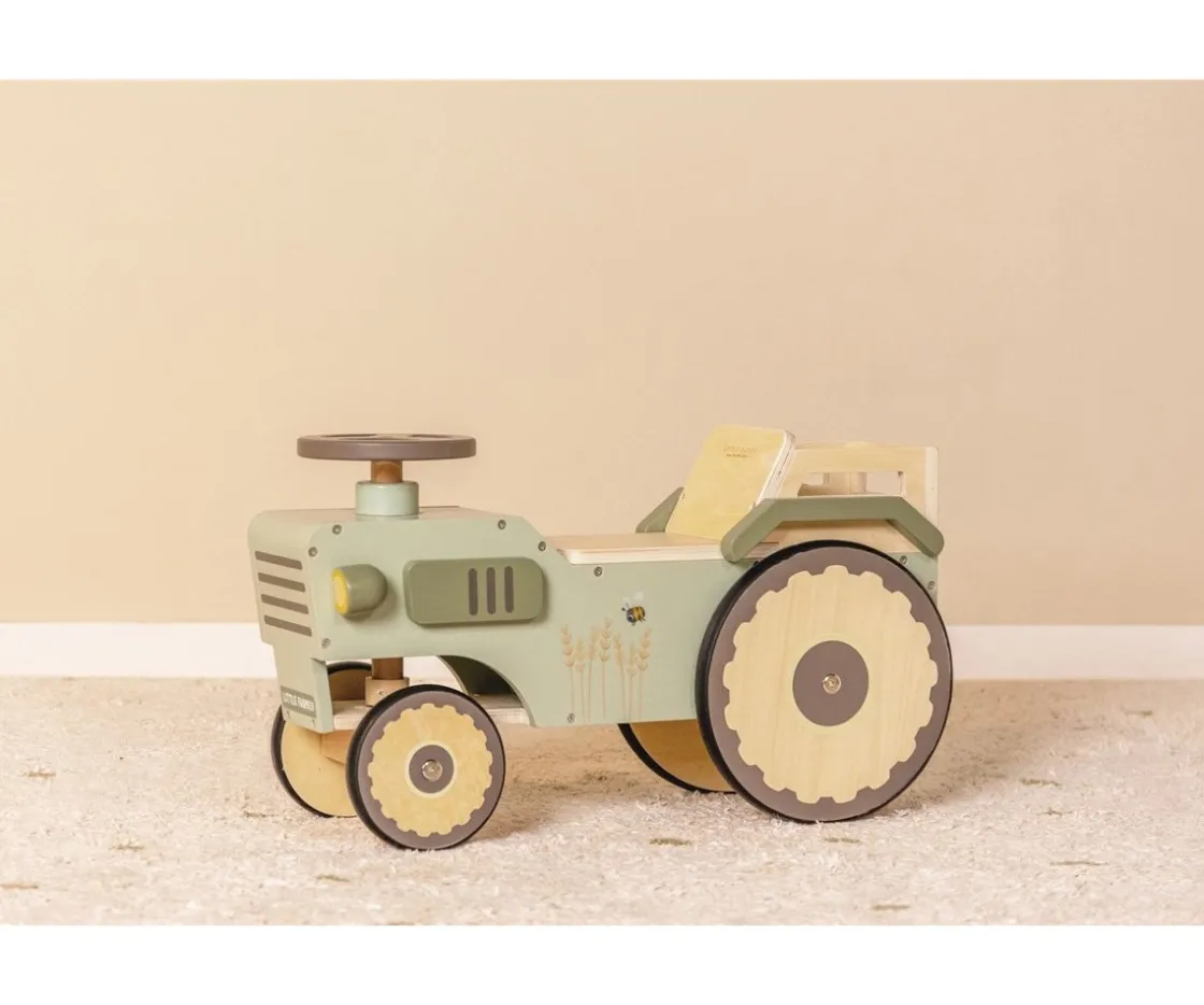 Los peques irán aprendiendo a dar pasitos y finalmente a caminar con la ayudar de este adorable motocultor de madera. Los peques podrán imaginar que pasean por su granja para observar sus vacas, sus cultivos y mucho más con su propio tractor.