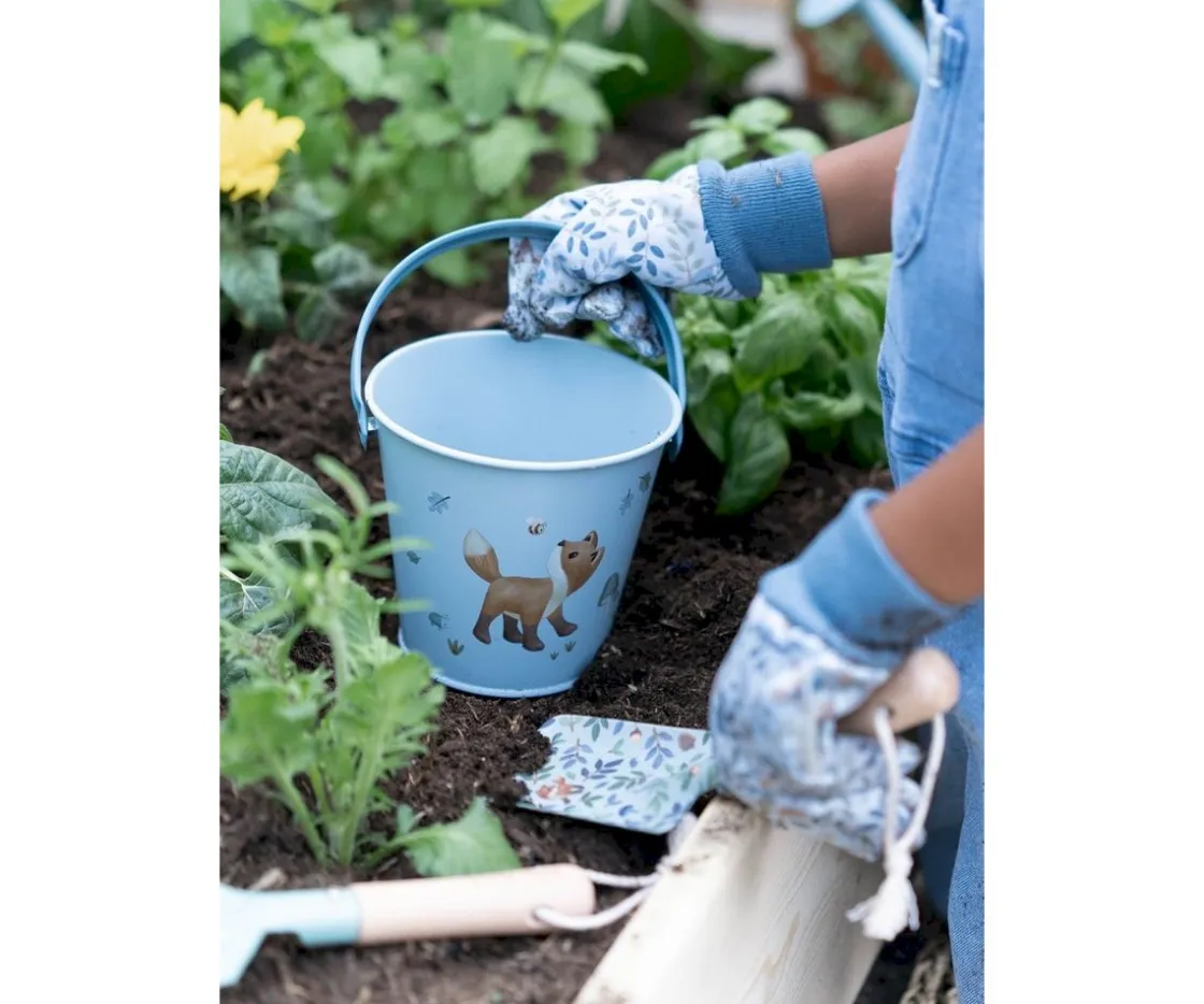 Fabricado en metal resistente y con un asa práctica, este cubo es perfecto para los pequeños jardineros.