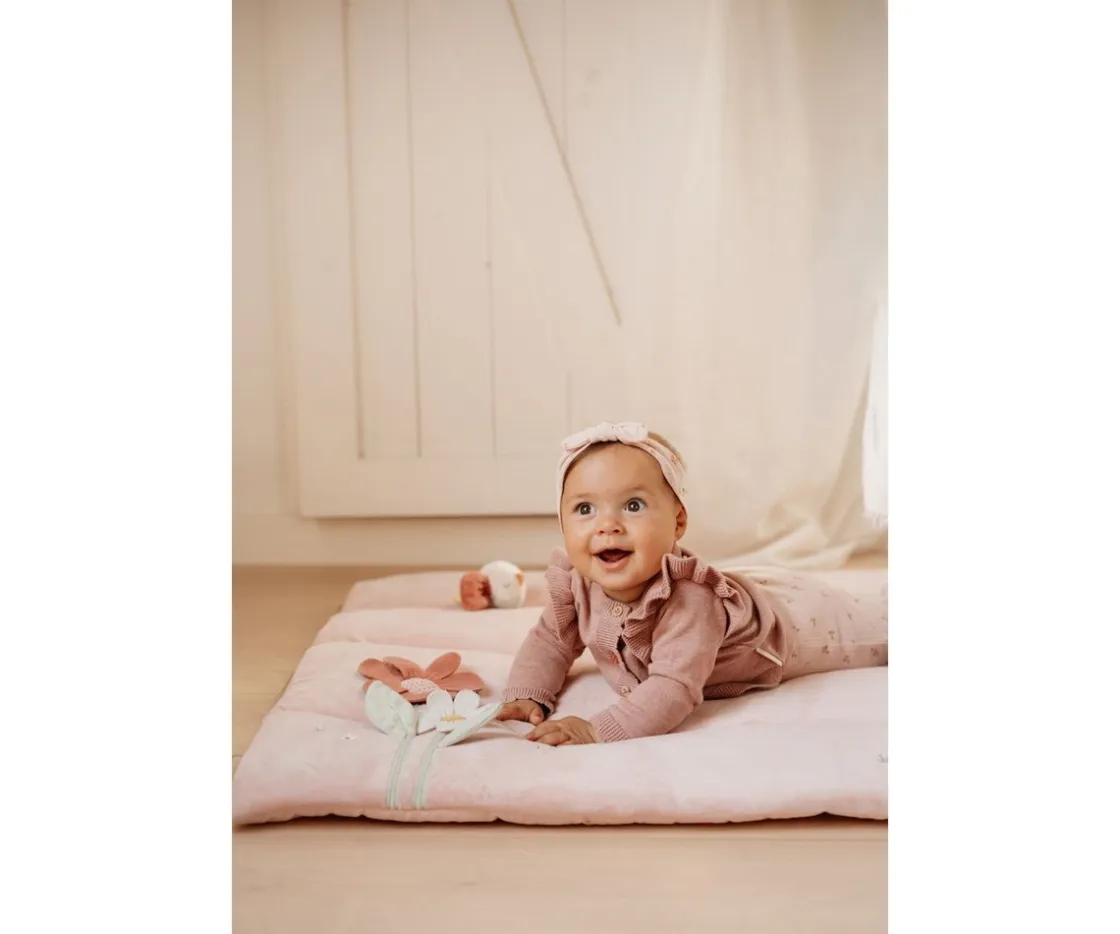 Esta manta acolchada está llena de texturas y características que estimularán sus sentidos. Hecho para horas de entretenimiento los peques encontrarán hojas crujientes, suaves nubes, un zorro muy suave, un búho y un escarabajo.