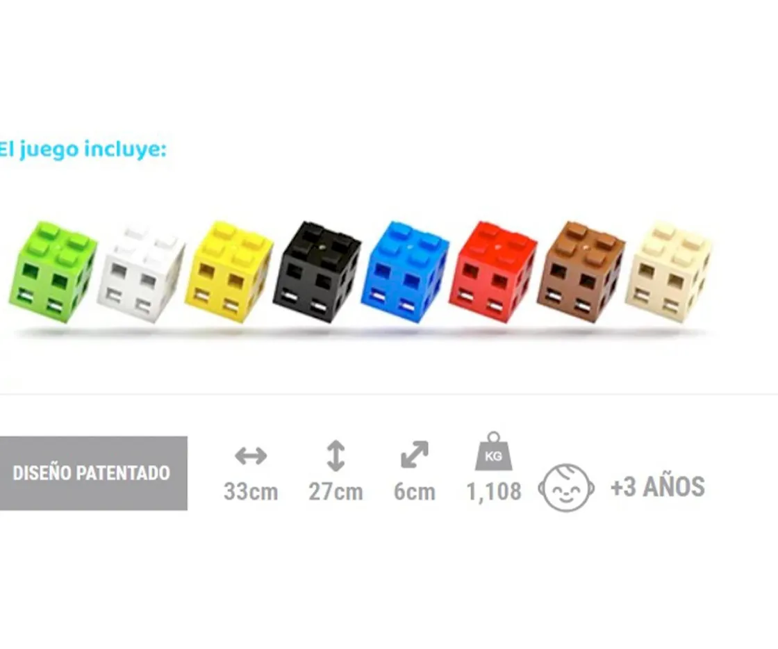 Cada set incluye cubos de hasta 8 colores: verde, azul, negro, rojo, blanco, marrón, amarillo y beige.