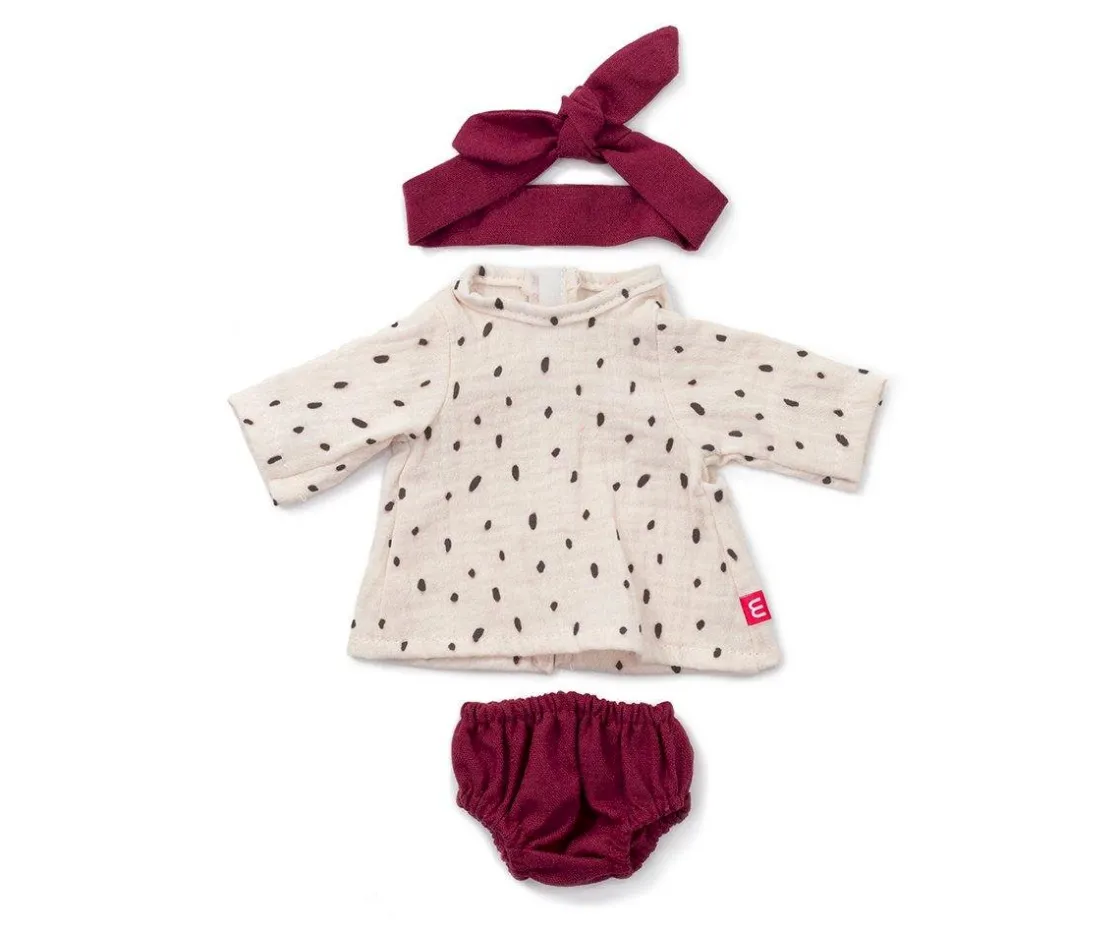 Dulce conjunto compuesto por 3 piezas con el que los peques podrán desarrollar su habilidad para vestir a su bebé.