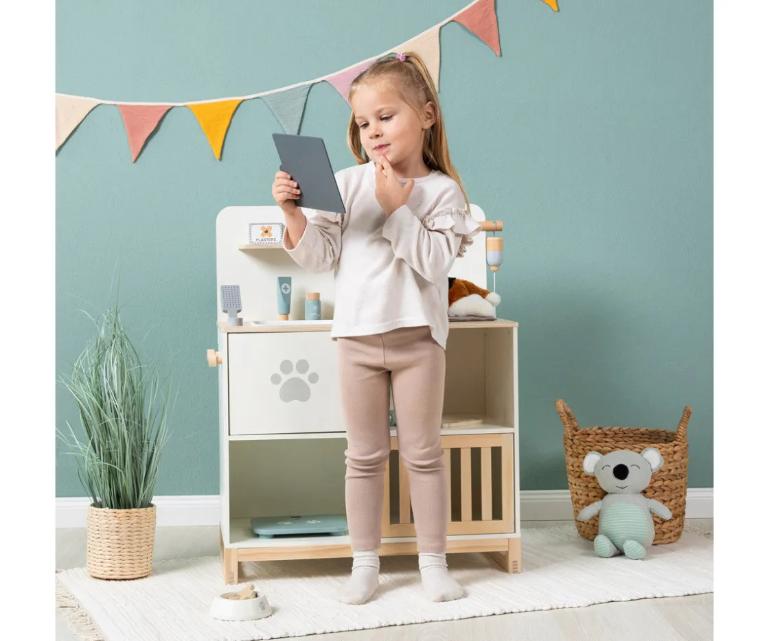 Ofrece a los niños una experiencia de juego realista y educativa. Fabricado en madera sostenible, permite aprender sobre la responsabilidad y el cuidado de los animales de forma divertida.