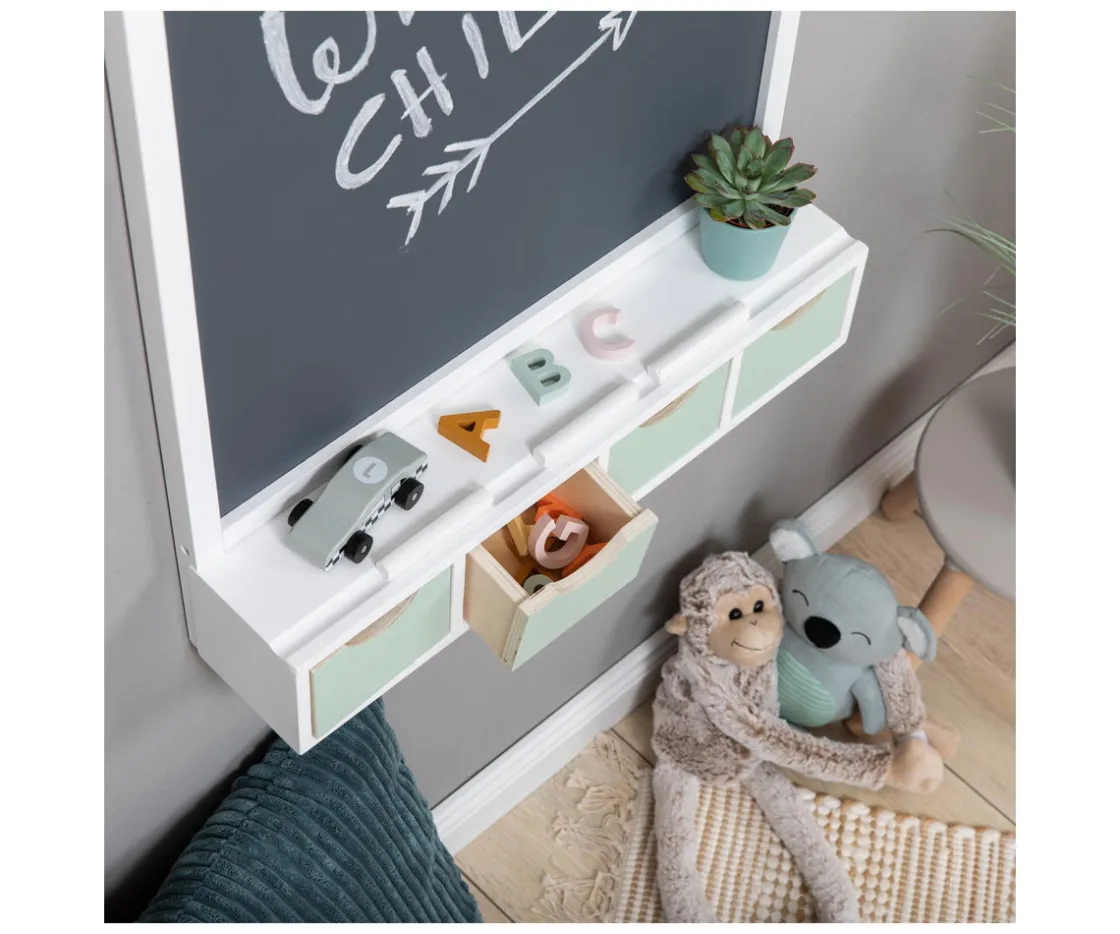 Ya sea para jugar a “la escuela”, practicar letras y números o dibujar pequeñas obras de arte, esta pizarra ofrece horas de entretenimiento y aporta un encanto especial a cualquier pared.