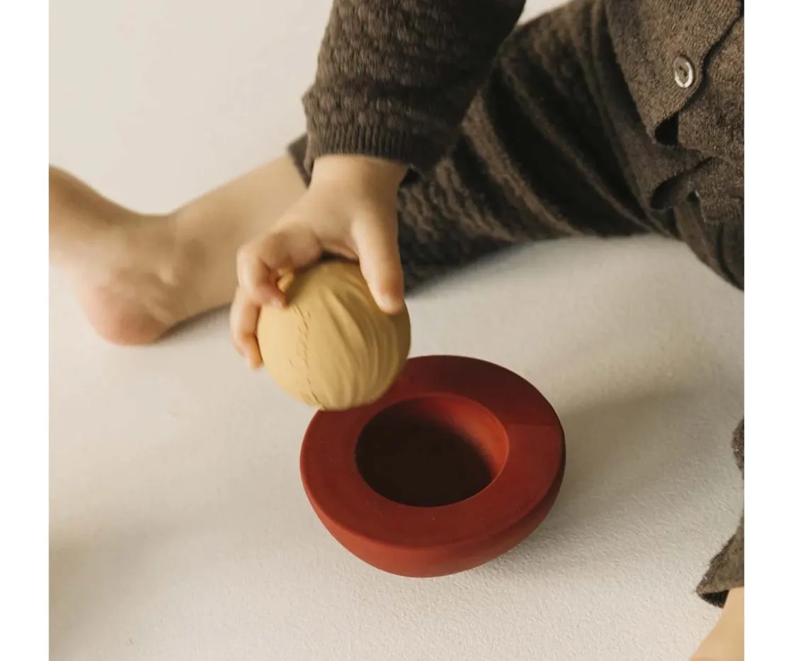 Merry the Cherry de Oli&Carol es un juguete 3 en 1: apilable, sonajero y pelota. Fabricado en caucho 100% natural y relleno de huesos de cereza, estimula los sentidos del bebé con su suave sonido al agitarlo, mientras las piezas apilables fomentan el pensamiento lógico. Además, rueda y rebota para aportar más diversión al juego.