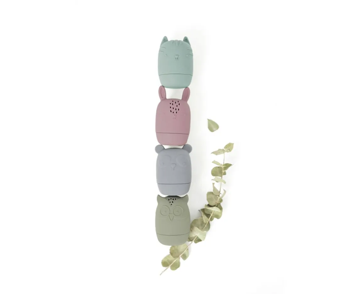 - Set de 4 juguetes baño compuesto por: un gato, un conejo, un oso panda y un búho