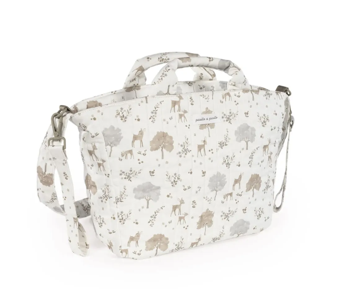 El bolso organizador Nara de Pasito a Pasito es ideal para llevar todo lo necesario durante el paseo del bebé. Está elaborado en loneta de algodón 100%, con amplio espacio y varios bolsillos interiores para una organización fácil. Incluye un bolsillo interior térmico para botellas o biberones. ¡Con un diseño perfecto para el uso diario y poder combinar con tus looks!
