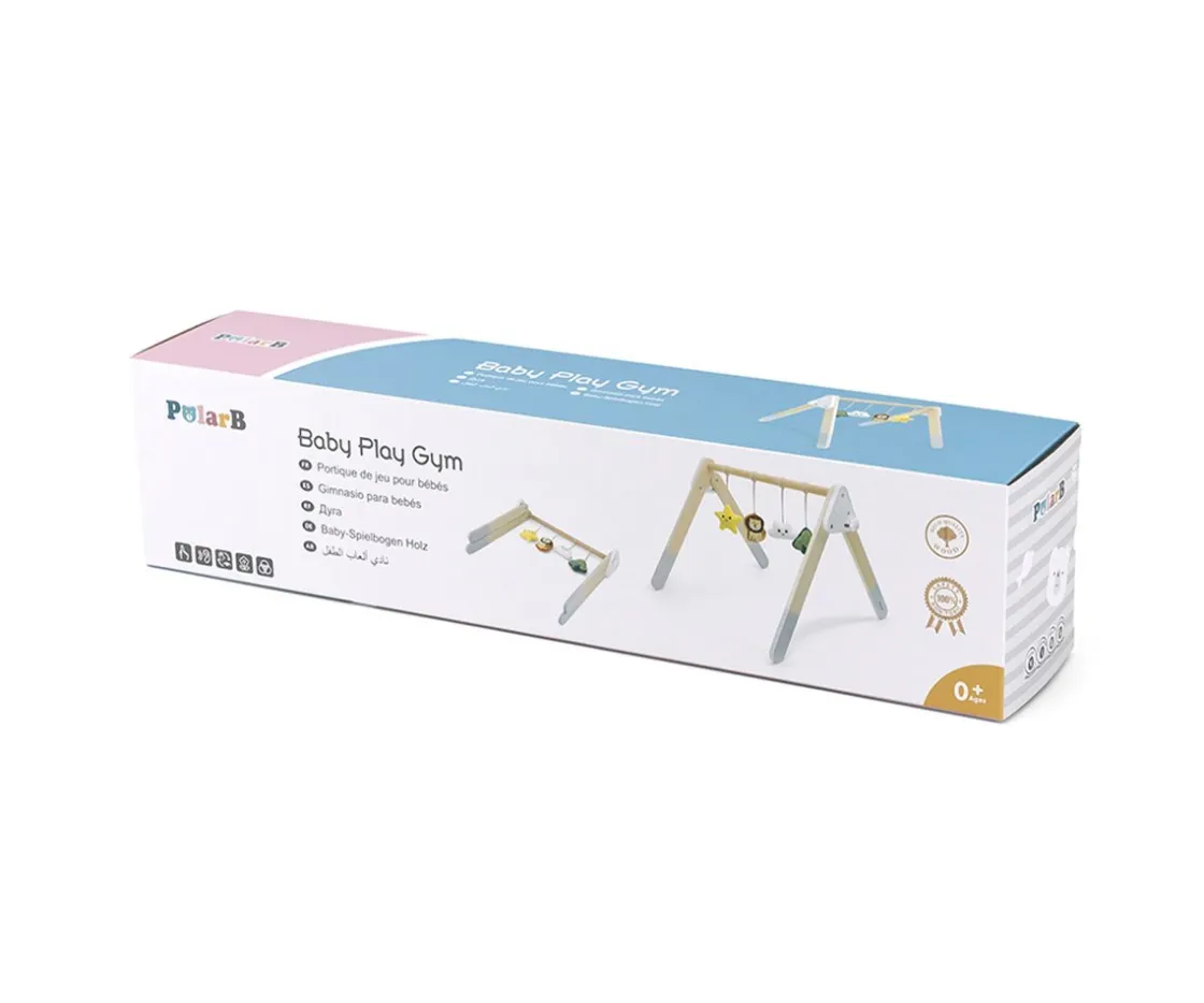 Entrena a tu bebé con este gimnasio con diseño moderno de Polar B. para bebés. Con el los peques desarrollarán la coordinación mano-ojo, estimularán sus sentidos y entrenarán la motricidad. Se puede plegar e incluye 3 preciosos juguetitos colgantes.