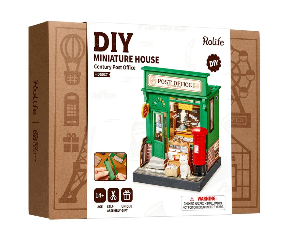 Esta divertida mini maqueta pertenece a la colección Little & Warm Space de Rolife. Revive la magia de las cartas escritas a mano y observa al detalle las piezas de esta mini oficina de correos clásica con su buzón y accesorios cuidadosamente detallados.
