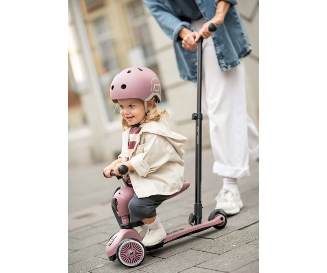 El patinete Highwaykick 1 Push and Go de la marca Scoot and Ride, combina todas las ventajas del Highwaykick One con una nueva característica: la barra de empuje para padres y madres.