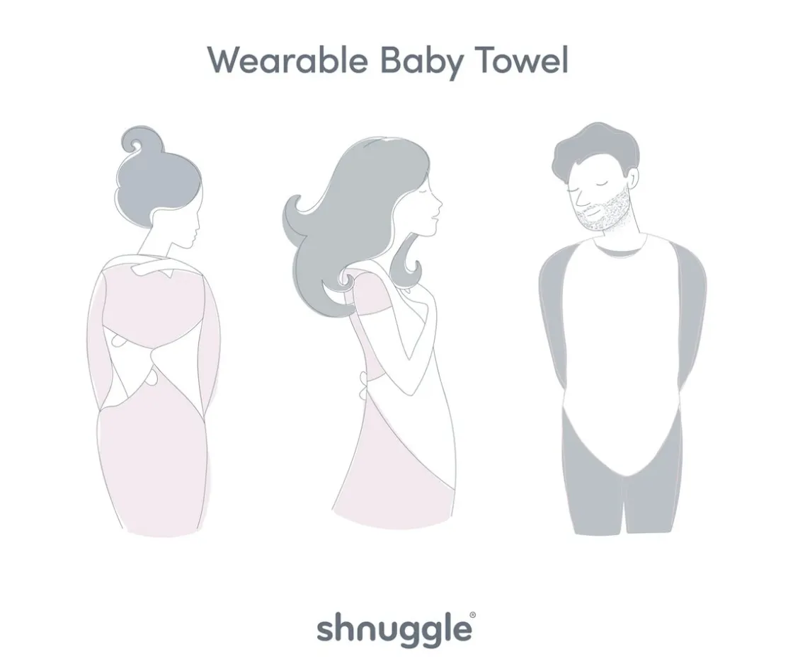 La toalla delantal de bebé de Shnuggle te mantiene seco y tus manos libres para que la hora del baño sea cómoda y sin estrés. Su diseño te permite tener ambas manos libres para levantar al bebé del baño y envolverlo en la toalla con facilidad y evitar mojarte mientras bañas a tu peque.