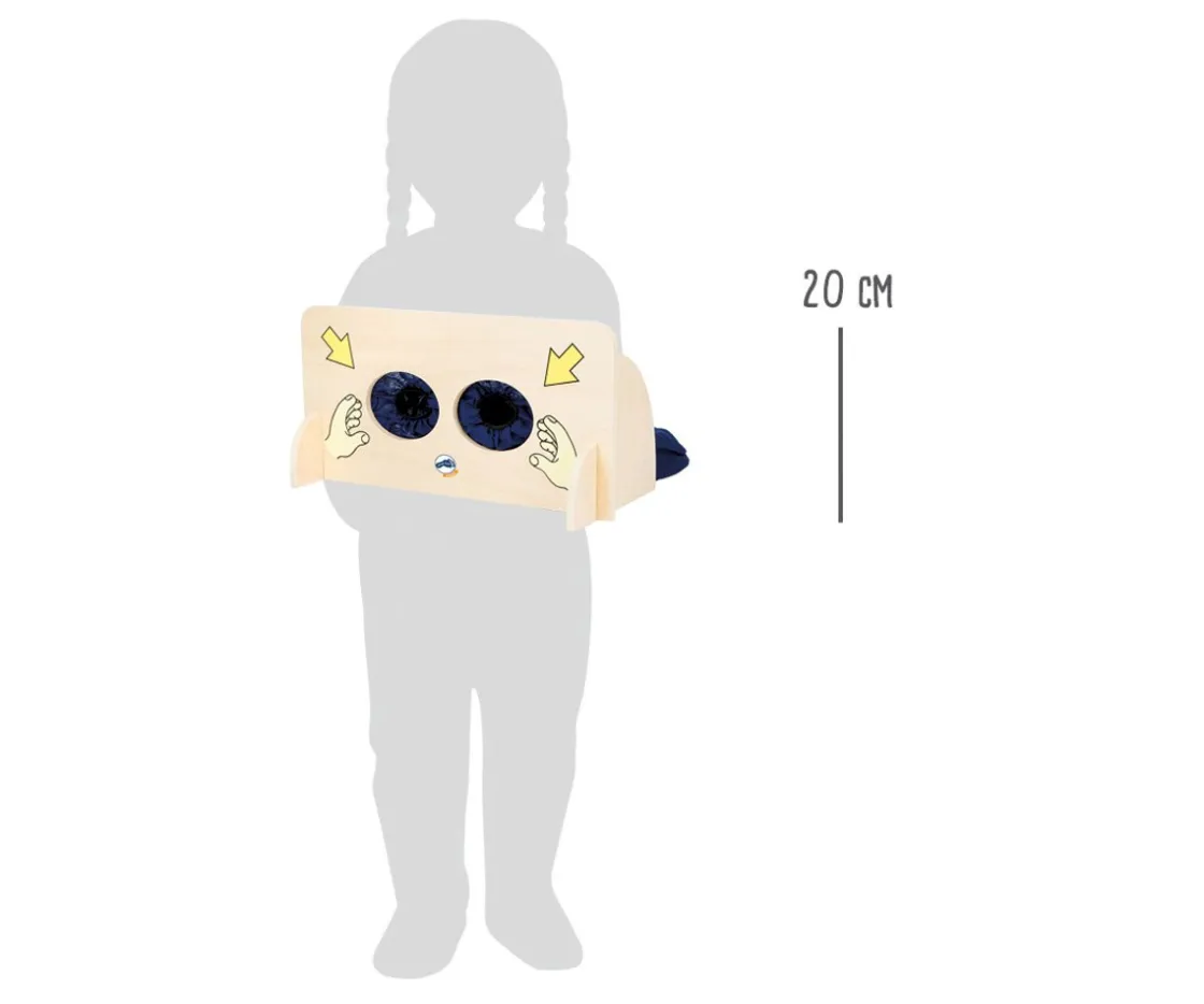 Un divertido juego que estimulará los sentidos de los peques. Coloca diferentes objetos en el interior de la bolsa de tela con cierre y deja que los peques metan sus manitas e intenten reconocer los objetos que hay dentro.