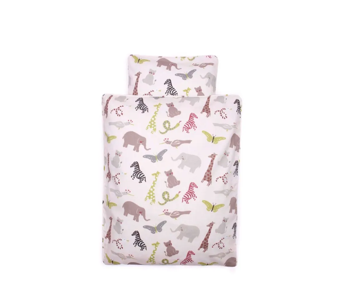 Precioso conjunto de edredón y almohada de algodón perfecto para arropar a las muñecas y ositos en la cuna o el cochecito.