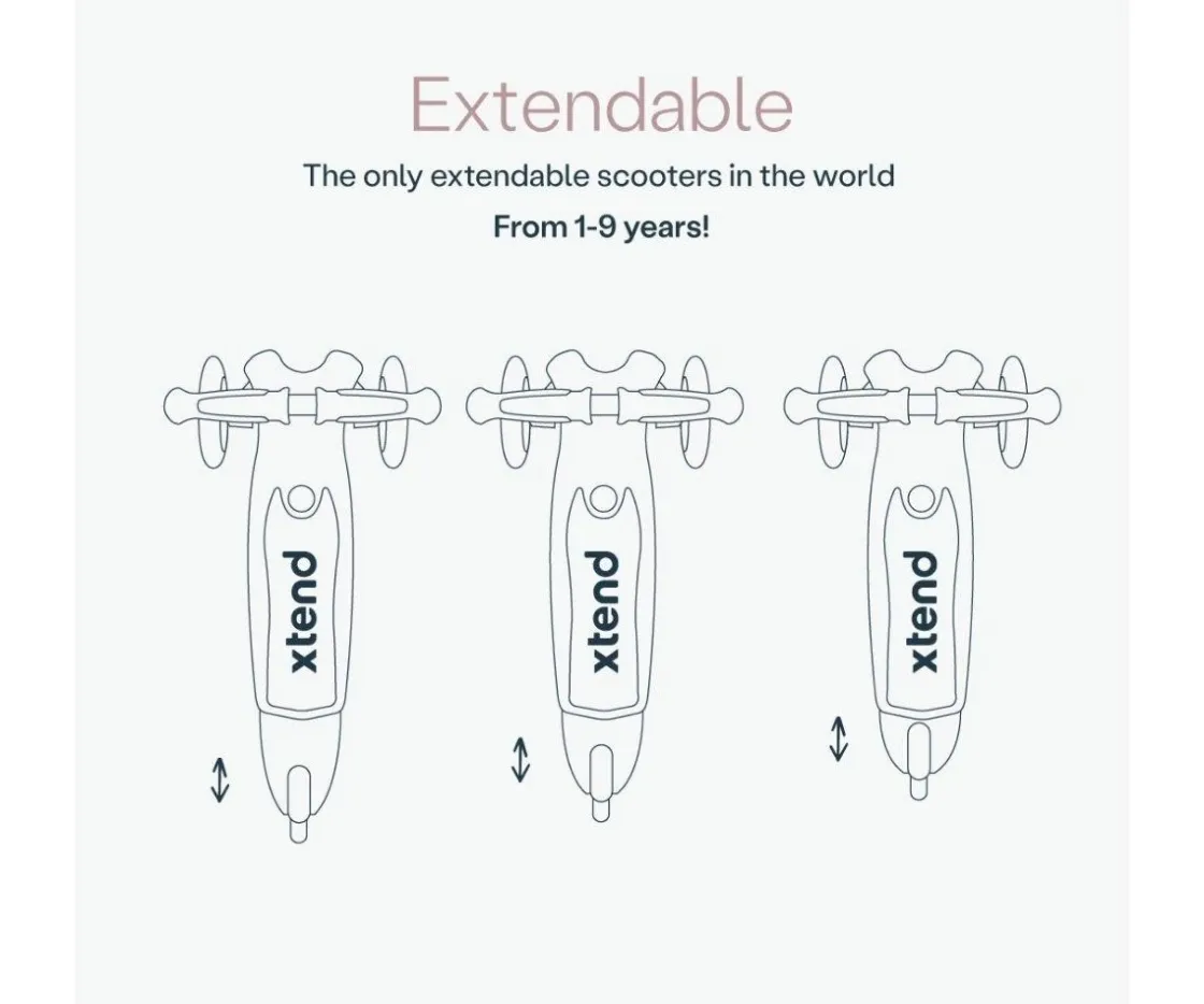 Su base extensible en dos posiciones lo que lo hace un patinete evolutivo que tu peque podrá usar desde los 3 hasta los 9 años.