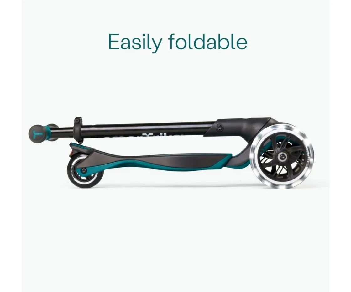 Debajo de su asiento cuenta con un compartimento para que los pequeños conductores guarden sus artículos más preciados. Además tiene un plegado rápido y compacto, cuenta con ruedas de led de gran tamaño que lo hacen apto para todo tipo de terrenos.