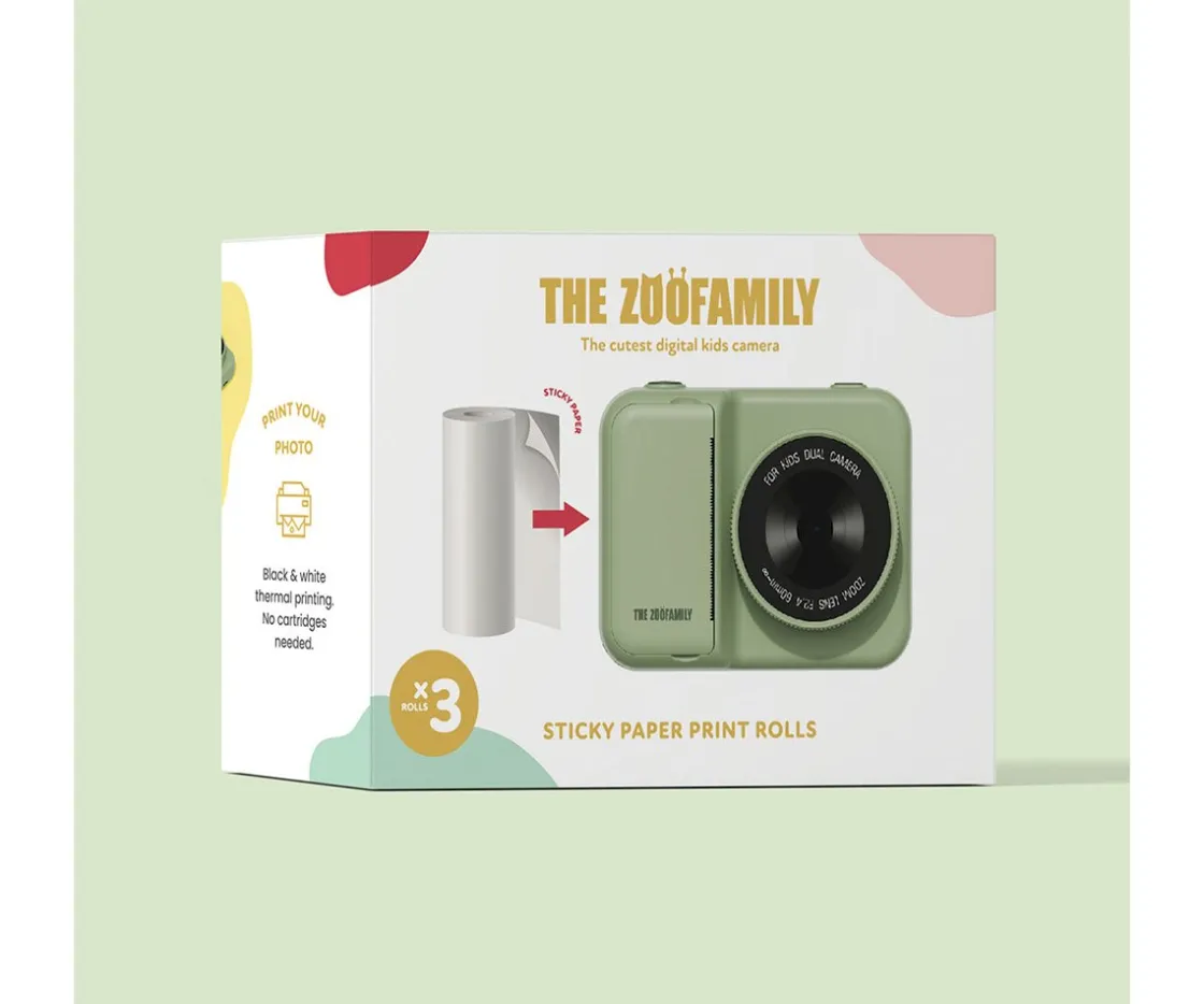 The Zoofamily ofrece una solución práctica y versátil para las cámaras digitales de impresión Zoo, con el pack de 3 rollos de papel sticker con el que podrás imprimir aproximadamente 225 fotos y pegarlas en el álbum o en cualquier lugar de recuerdo. Estos rollos garantizan una impresión de calidad en blanco y negro para cada momento capturado.