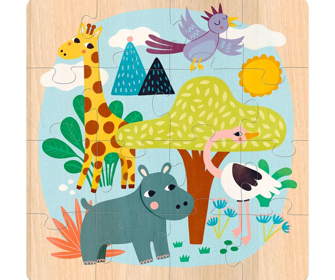 3 puzzles originales y didácticos de animalitos del mundo con los cuales los peques disfrutarán encajando sus fichas.