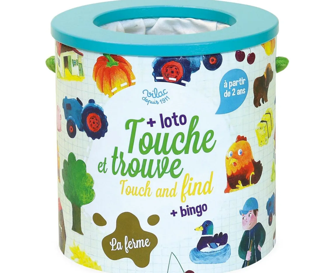 Juego de reconocimiento táctil que consiste en meter la mano en la bolsa para encontrar las piezas que necesitas. El juego incluye 21 piezas de madera que incluyen una pieza truco y 20 cartas ilustradas. Además, puede usarse como bingo.