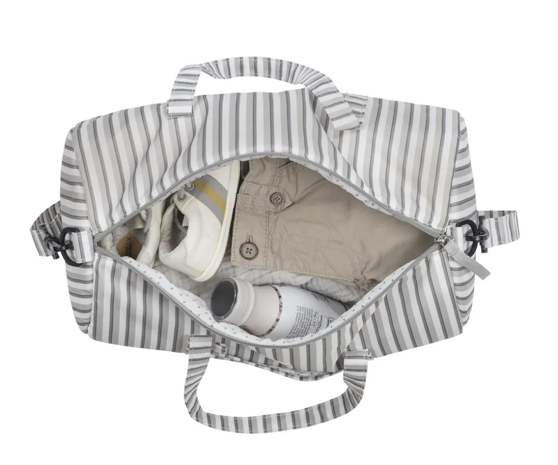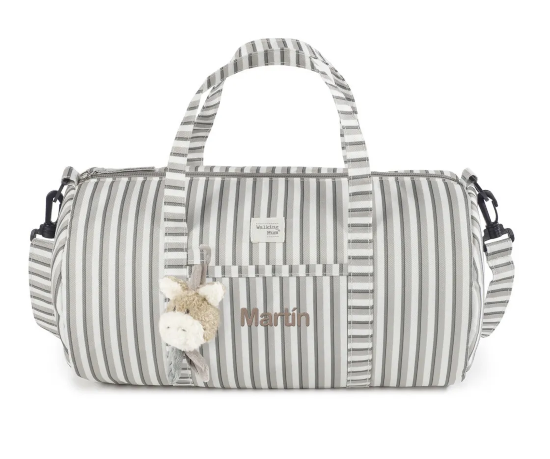 La bolsa weekend de la colección Botton Rayas de Walking Mum, es ideal para escapadas, deporte o guardería. Resistente, combina su diseño adorable con funcionalidad. Incluye asas cortas y correa larga ajustable, cierre con cremallera y detalles bordados. Fácil de lavar y segura para los peques, ¡es perfecta para acompañarlos en todas sus aventuras!