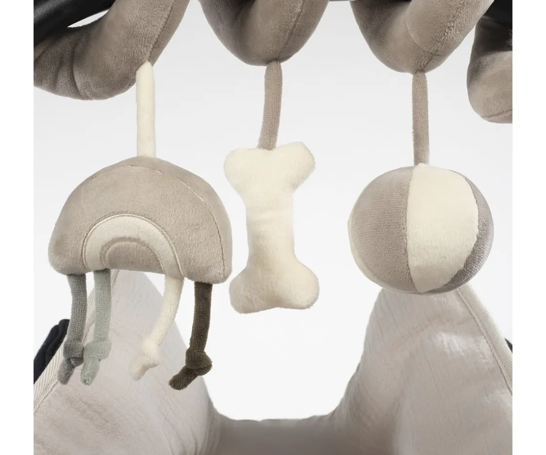 La espiral de actividades con una adorable cabeza de perrito de la colección Sintra de Walking Mum, es ideal para estimular y entretener a tu bebé. Confeccionado en materiales suaves y seguros, se adapta fácilmente a cochecitos o sillas de auto. Incluye colgantes con texturas, formas y sonidos que fomentan el desarrollo sensorial.