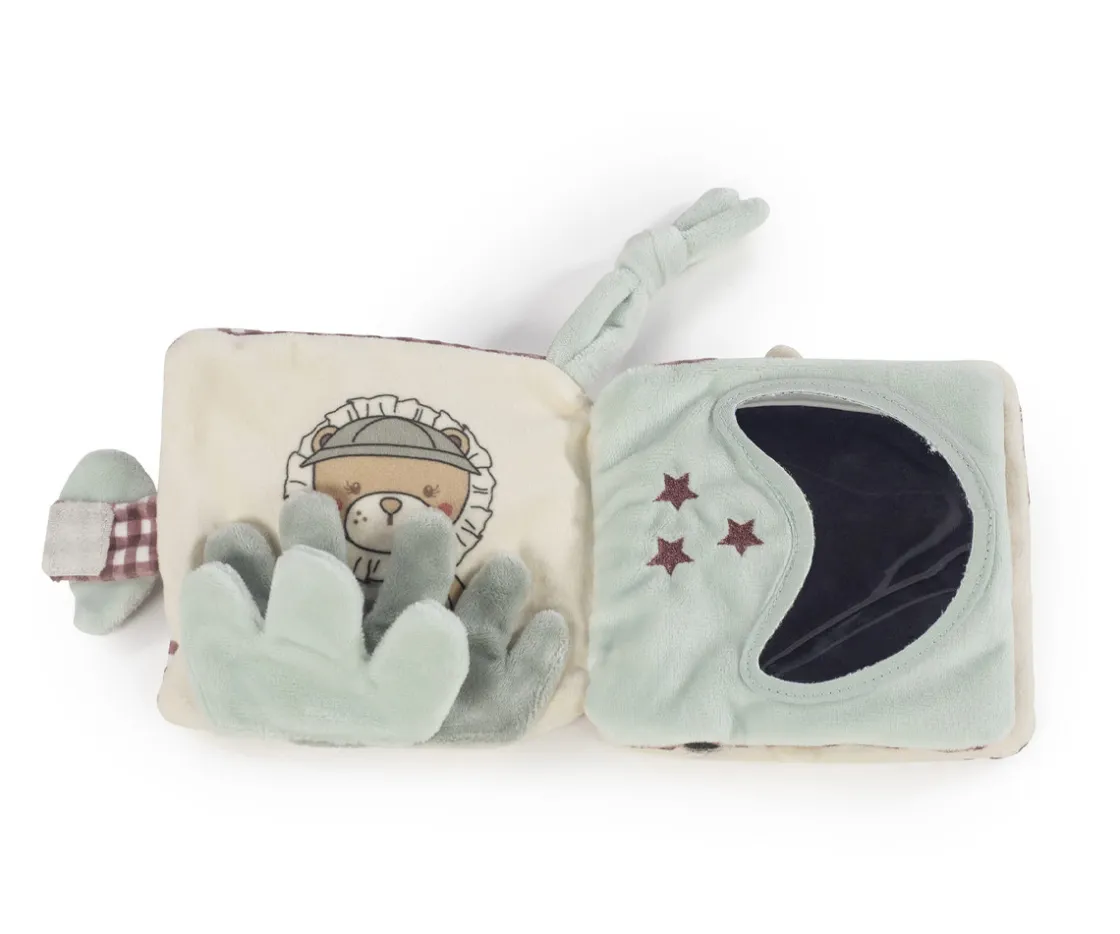 Este adorable libro está diseñado para estimular los sentidos y el desarrollo temprano de tu bebé. Cada página ofrece sorpresas como un león asomándose, una luna arrugada con estrellas, un sol sonriente y un león aventurero en un jeep, que fomentan la curiosidad y las habilidades motoras finas.