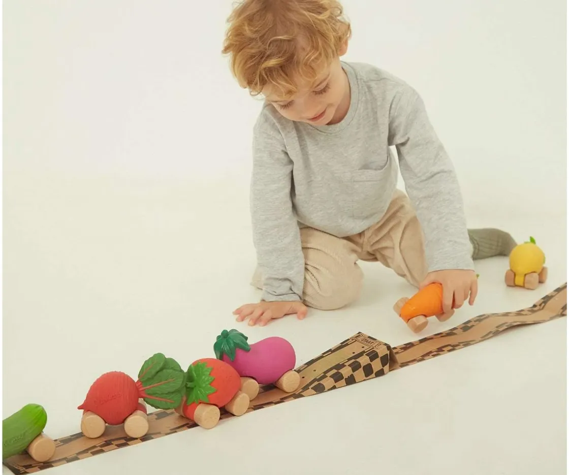 Los Green Cars de Oli&Carol son una colección de coches de juguete para bebé con formas de frutas y verduras.