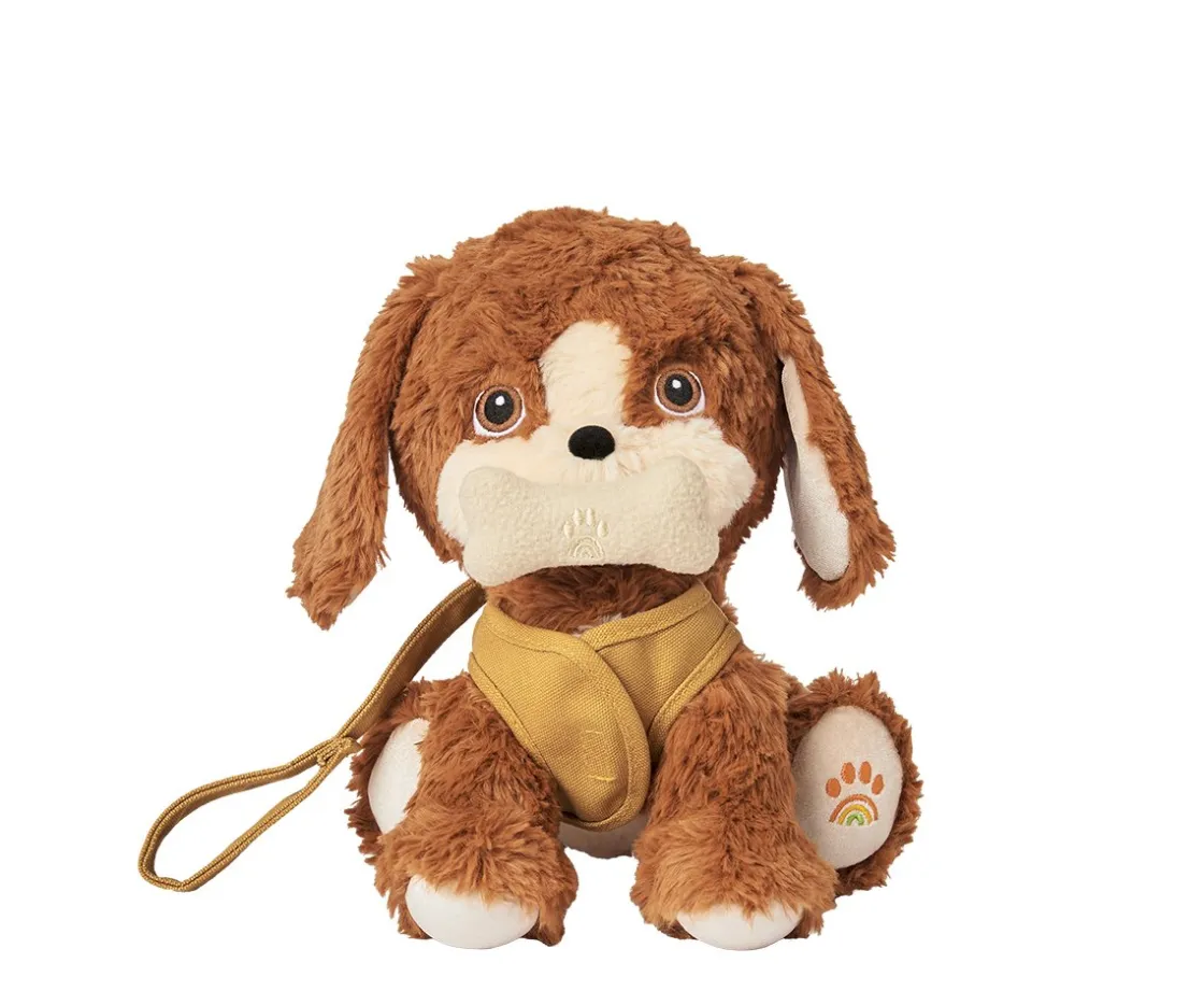 - Cara bordada y detalle de pata bordada con arcoíris diseñado por Olli Ella