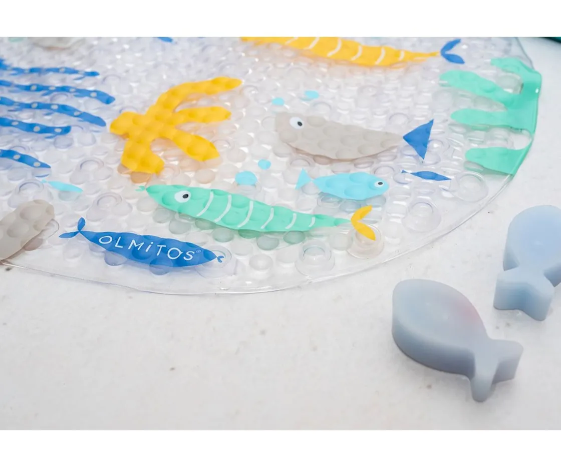 Evita resbalones en la ducha o bañera con la alfombra antideslizante Ocean de Olmitos. Más seguridad y diversión a la hora del baño.