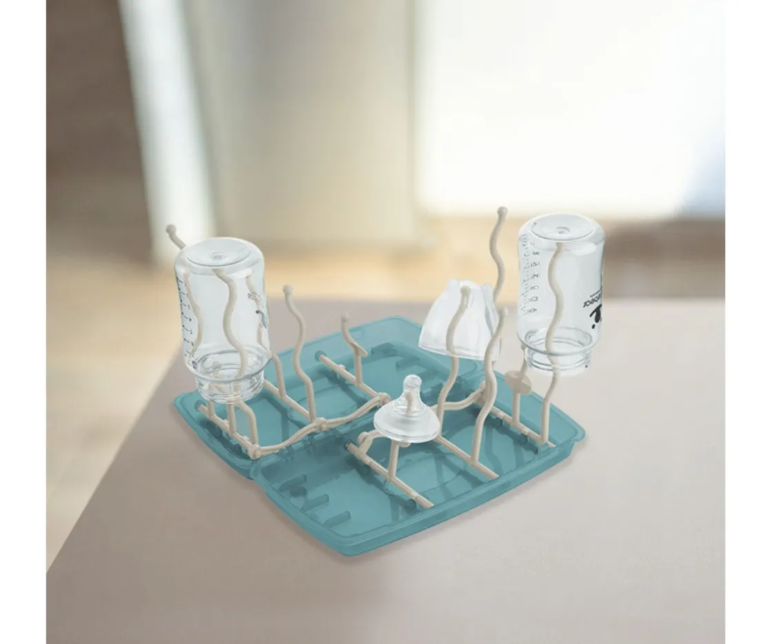 El escurridor de biberones plegable permite secar de manera ordenada los biberones, tetinas, chupetes y otros accesorios de lactancia. Al plegarse es ideal para viajes y las múltiples varillas y soportes, ofrecen una amplia capacidad de secado.