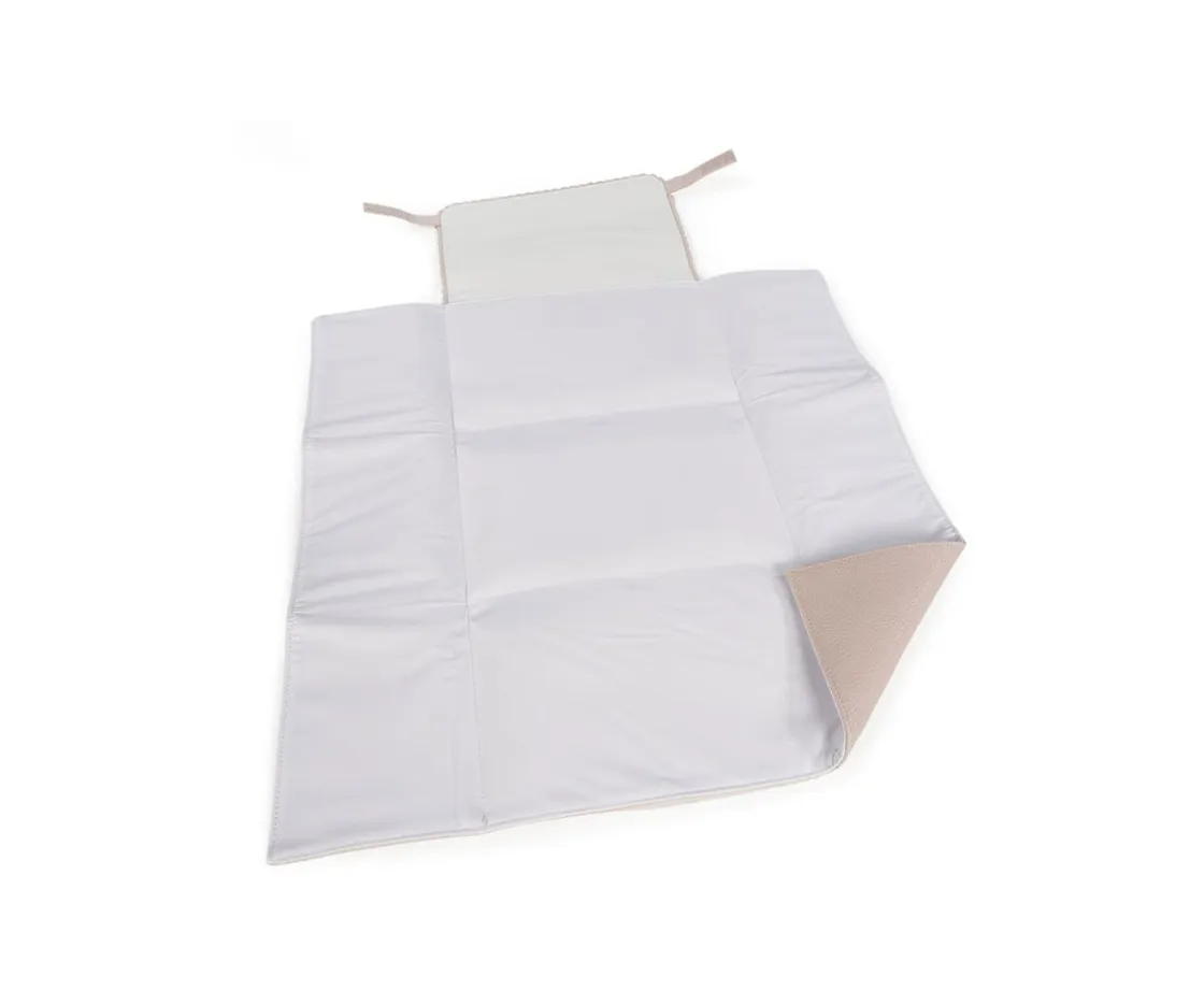 Fabricado con ecopiel resistente pero suave al tacto, este cambiador ofrece un lugar seguro y cómodo para cambiar a tu bebé en cualquier momento y lugar. Su diseño elegante se pliega de forma compacta para facilitar su transporte, con correas de cierre que mantienen todo en su lugar dentro de tu bolsa.