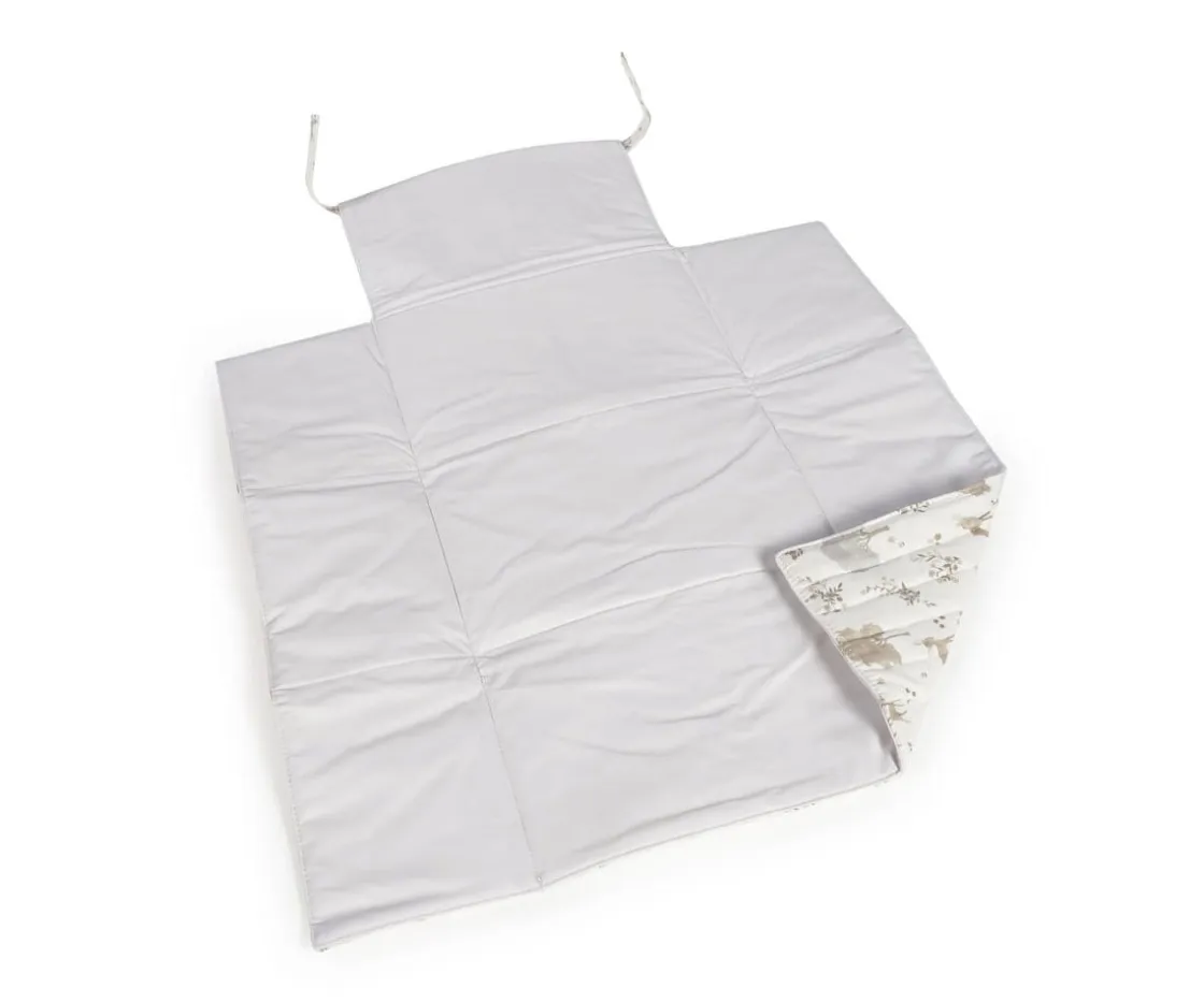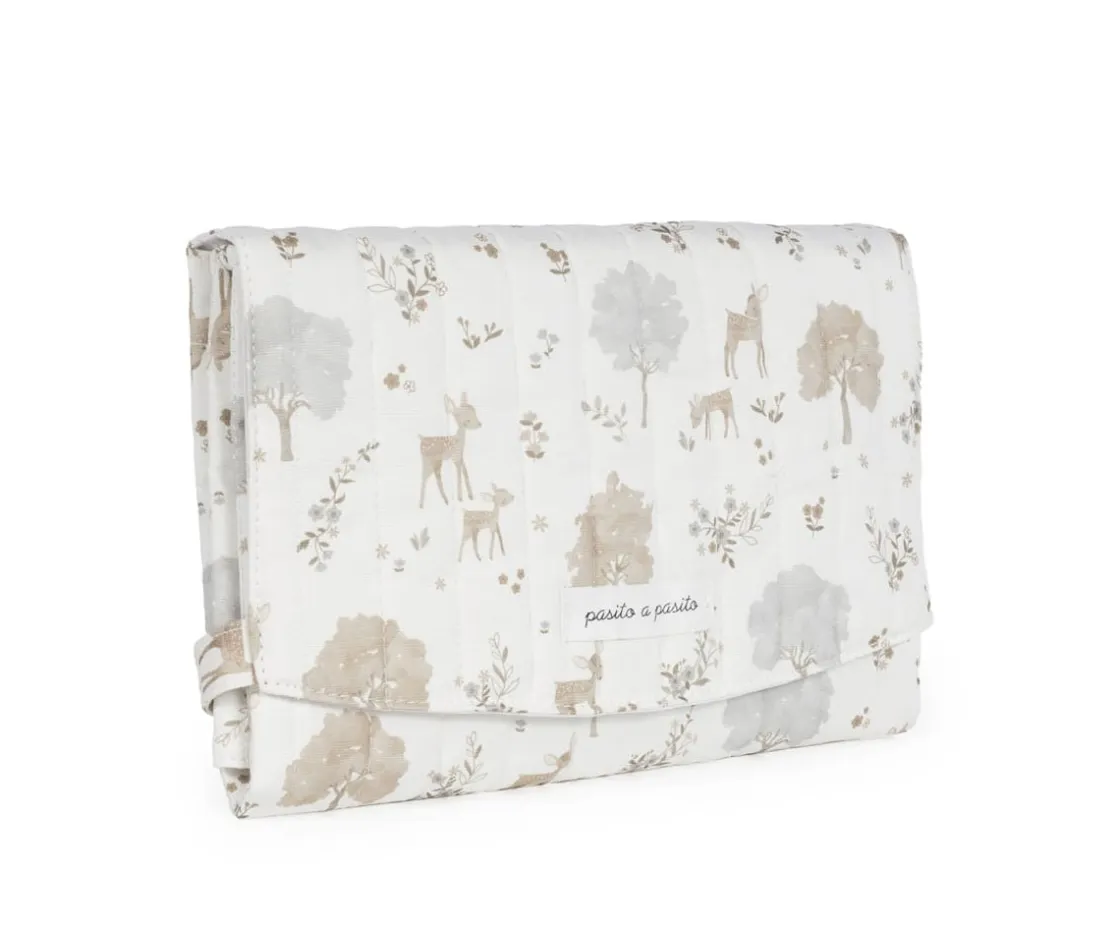 Fabricado en loneta de algodón 100% , este cambiador ofrece un lugar seguro y cómodo para cambiar a tu bebé en cualquier momento y lugar. Su diseño elegante se pliega de forma compacta para facilitar su transporte, con correas de cierre que mantienen todo en su lugar dentro de tu bolsa.