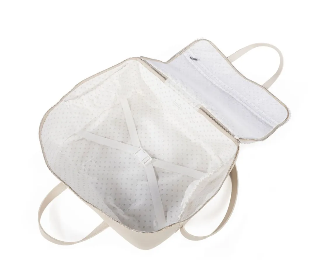 La maleta de bebé Icon Cream de Pasito a Pasito es ideal para el hospital o para salir de viaje. Está elaborada en resistente y suave polipiel, ofreciendo un diseño moderno y práctico.